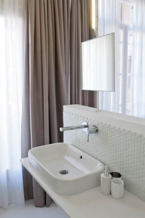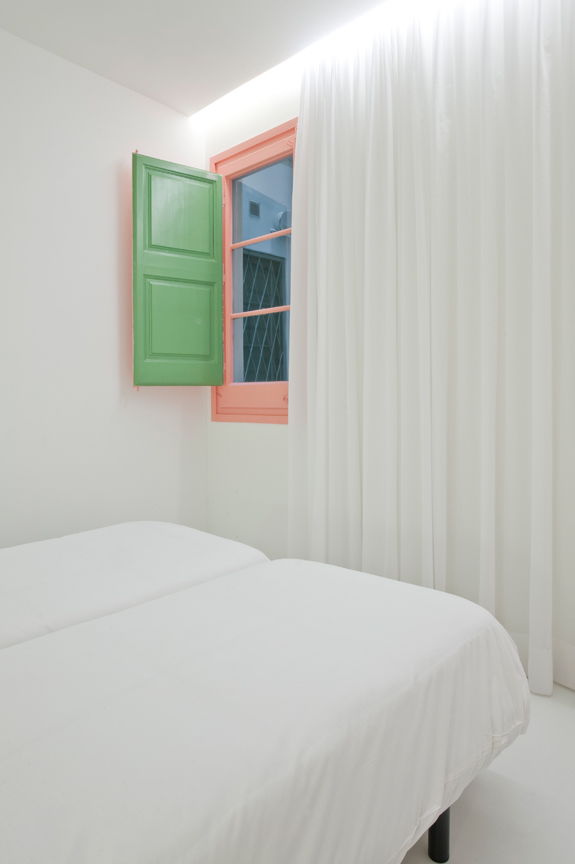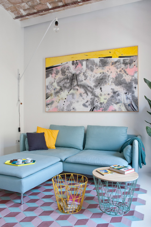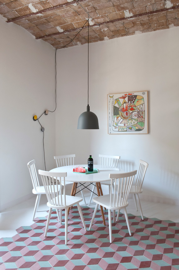 I spotted this apartment yesterday on Living and thought it would be an appropriate post today. It is the summer home of an Italian family, a joint project of Studio CaSA and Margherita Serboli Arquitectura. This 97 sq m apartment located in Eixample, Barcelona is now bright and modern, with some original details maintained such as window frames and vaulted Catalan terra cotta ceiling (soooooo gorg!!). The cement tumbling block patterned tiles in the living and dining room are a really fun way to add pattern to the apartment and break up up the expanse of white in the open space. The pastel colours aren’t really my thing, but are really cute for a summer vacation pad. I would totally Airbnb this place. (Photos: Roberto Ruiz)