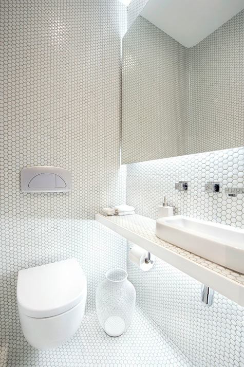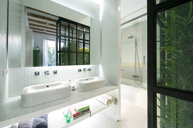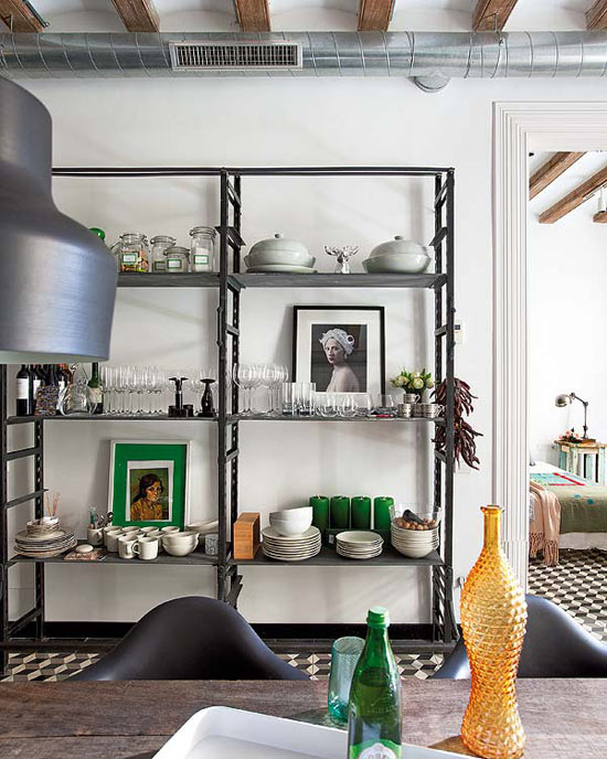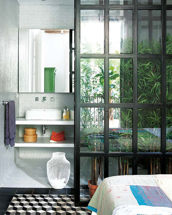 I absolutely love this house. Every bit of it. This completely renovated home, located in Barcelona, was designed by Egue y Seta. Original wooden beams were restored, and the kitchen (LOVE!) now expands 1/3 of the ground floor. I am totally enamoured with the tumbling block patterned tile that is used throughout the majority of the home – and don’t get me started on the tiny hexagon tiles. L O V E !!!!!! (via Micasa)