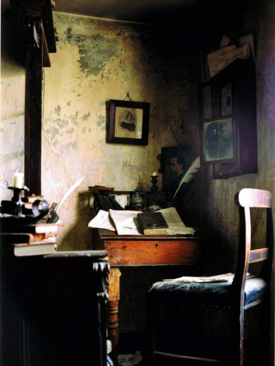 A man with a dream, an obsession, a domestic drama that unfolds through ten rooms over almost 200 years. House as museum, house as living history, house as an unfolding play. Dennis Severs’ House, Spitalfields, London. No electricity, no mod cons. It is as if the members of an 18th century merchant family have just stepped out of the room. Half eaten meal, beds still warm, the litter of everyday life. You can read more about the artist who uses his visitor’s imagination as his canvas and the friends who keep it going here.