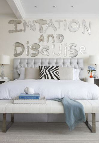 Brocky Proxmire wrote us about the bedroom his mother, interior designer Kelley Proxmire, designed for the DC Design House. It’s stunning, so elegant and sophisticated, and had a special feature: “The big hit of the room was the now you watch it (#7) now you don’t (#8) TV. The TV is mounted on a swing arm behind the drapery panels. There is a slit in the drapery panel on the end so that swing arm may be extended several inches into the room. The size of TV (19″) is correct size for this distance of TV viewing from the bed.” Brilliant! Thanks Brocky (and Kelley!)