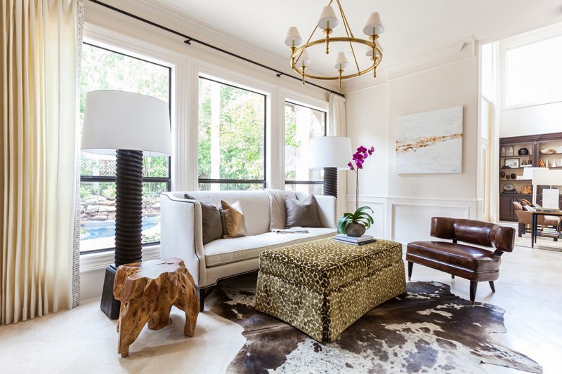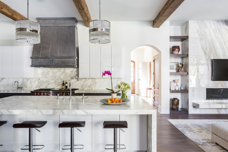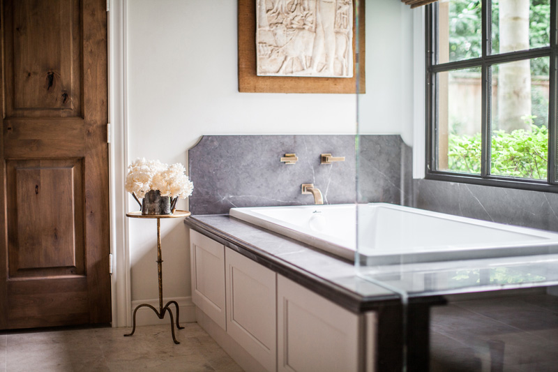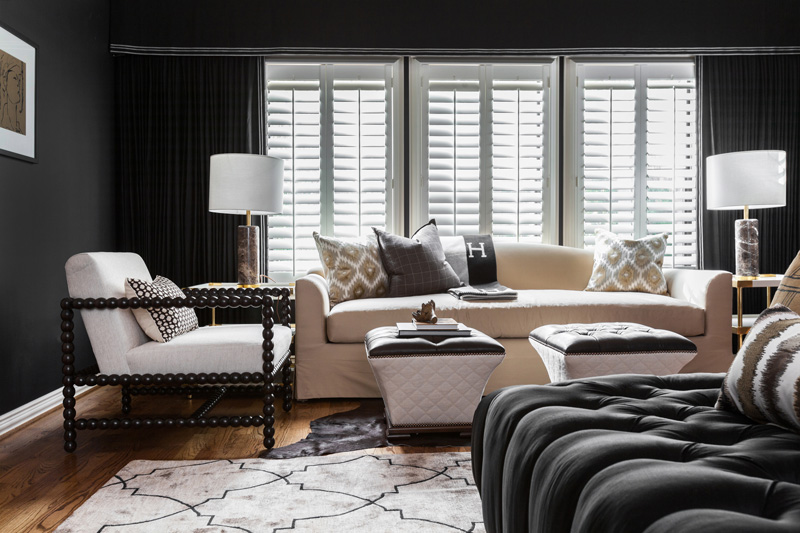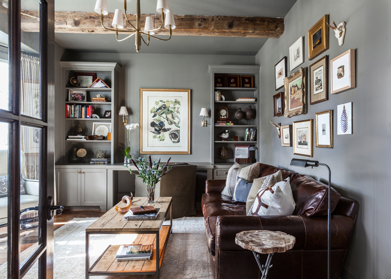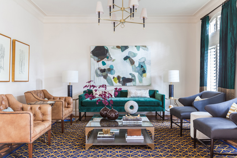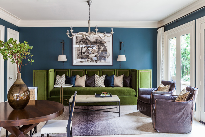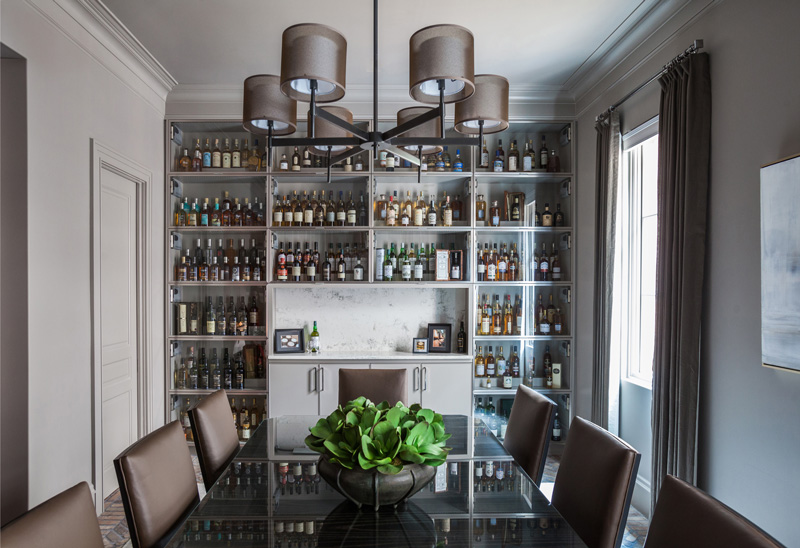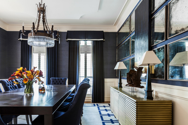 It was not that long ago that Jo shared some fabulous spaces by Houston-based interior designer Marie Flanigan, but I am back with more! Refined elegance with subtle dramatic touches with a gorgeous wallpaper, a dreamy light fixture, a dark wall, large scale art. Luxurious without being pompous.