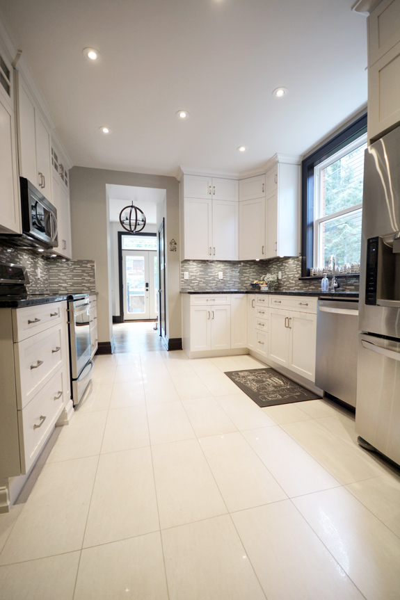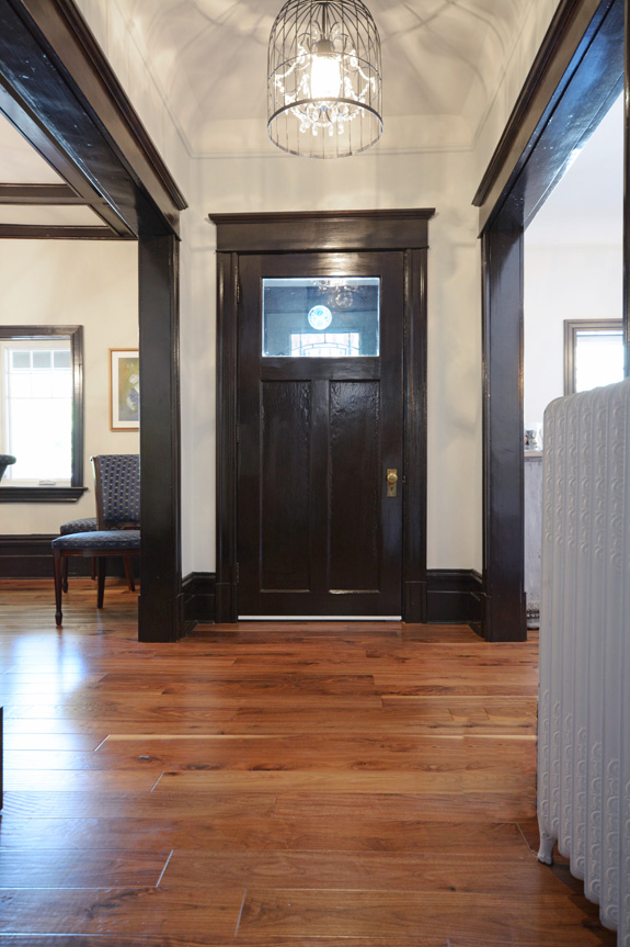 Corinne and her husband John bought this home for their family of 5 about 3 years ago. It was built in 1913 and needed SO much work. It was basically gutted as it needed new electrical, insulation and all that fun stuff (NOT), along with leveling the floor that had a 10″ slope (??!!). The original radiators were maintained and the moldings were saved and reused as well.