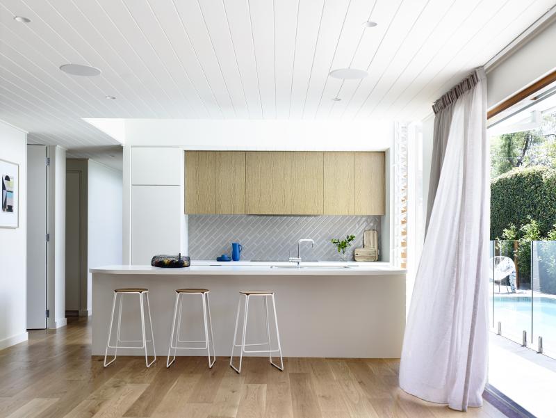 Bright, summery, energetic, refreshing and with enduring appeal. These spaces by Brisbane, Australia interior designer Claire Stevens are all of those things and so much more. I am dying over this first kitchen that was created as part of Claire’s firm’s studio. Gorgeous and light, and the addition of pink is fun and so easy to change out. (Photos: Toby Scott, Daniel Maddock)