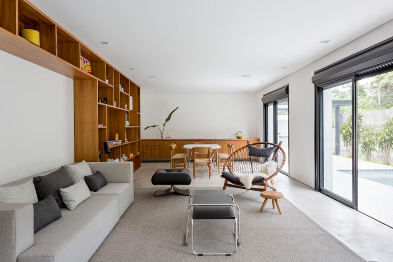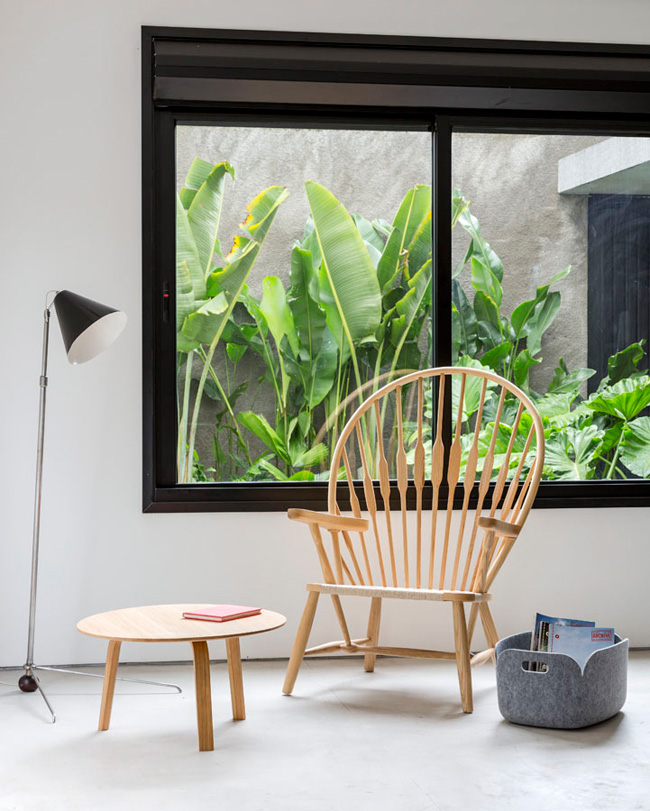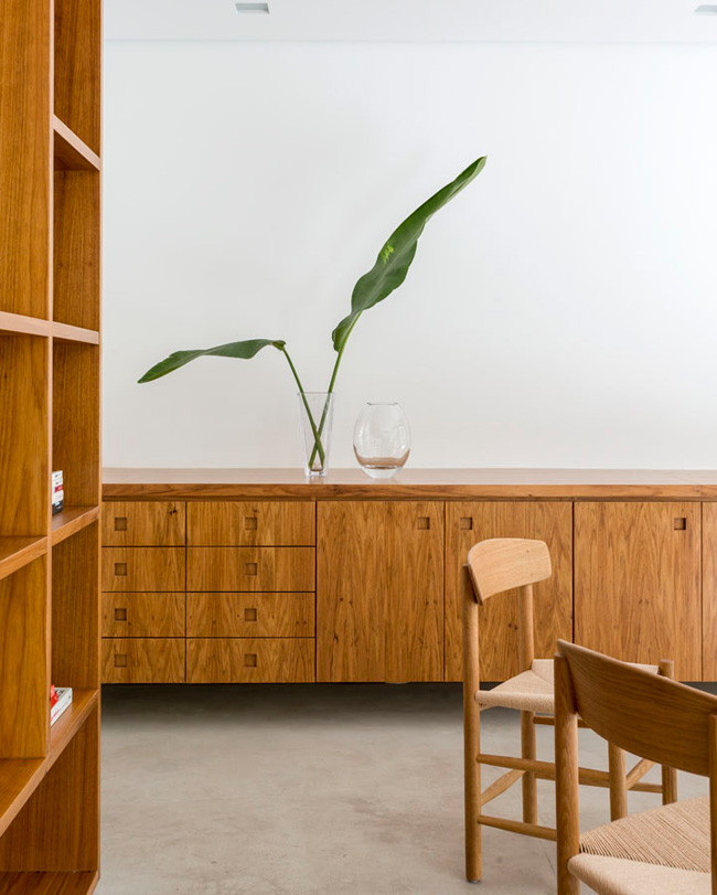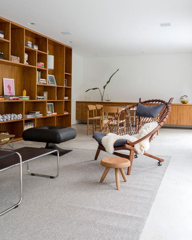A couple of months ago Jo featured a project by Brazilian architect Felipe Hess that was fresh and colourful with some fun graphic patterns. I came across this project of Felipe’s that is quite the opposite. Not what we typically see from a Brazilian – this one is very subdued, modern and minimalist. I love it for those reasons. And because someone clearly has great taste in chairs (Hans Wegner’s Hoop and Peacock).