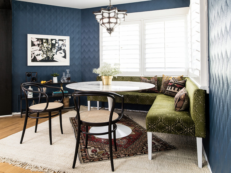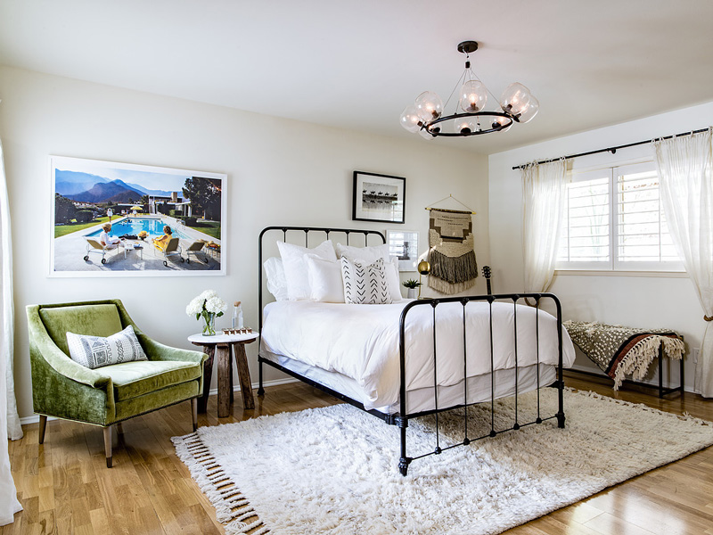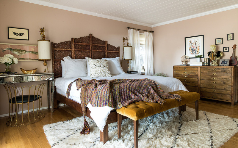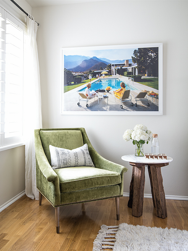 This Los Angeles home designed by Rachel Meadows is the perfect blend of vintage bohemian funkiness. I adore every piece of furniture and of course hats off to her for using large scale photography on the walls. I am forever a fan of that, and I am ready to move in….I just need to pack up the cats.