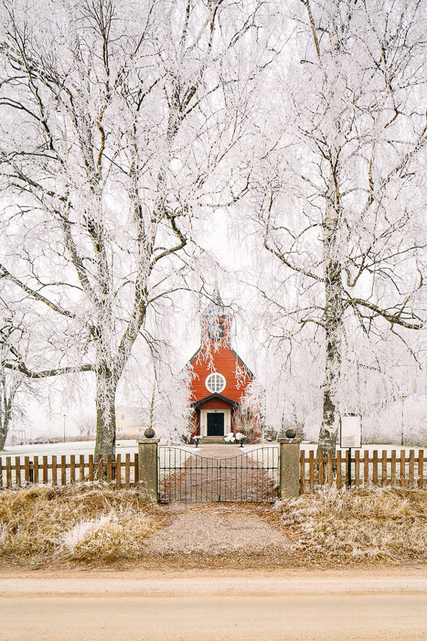 Thank you Thomas for sending us this link (via Fastighetsbryån) to this wonderful church conversion currently for sale in Sweden. On a frosty winter day it looks absolutely magical! Despite only having a couple of rooms, the ceiling height and lightness makes it appear so much larger. Yes, living in a converted church like this is still my dream. And this one may now have topped the list as my favourite.