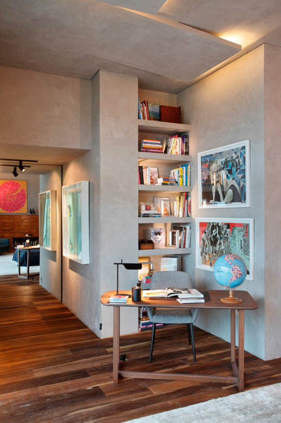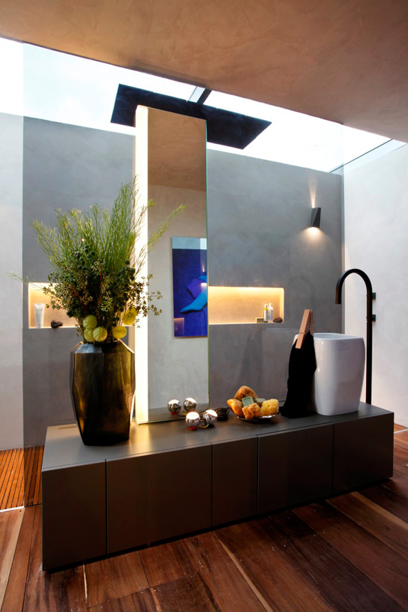 This master suite is what Gisele Taranto came up with for Casa Cor 2013. The space was designed for a couple who value intimacy and privacy, and is therefore TV-less! It brings together the indoors and outdoors with floor to ceiling glass dorrs between the bedroom and terrace, and a skylight above the shower area. This is a dreamy bedroom suite, whose bathroom alone is larger than my bedroom. *sigh* (More of Gisele’s work can be found here and here)
