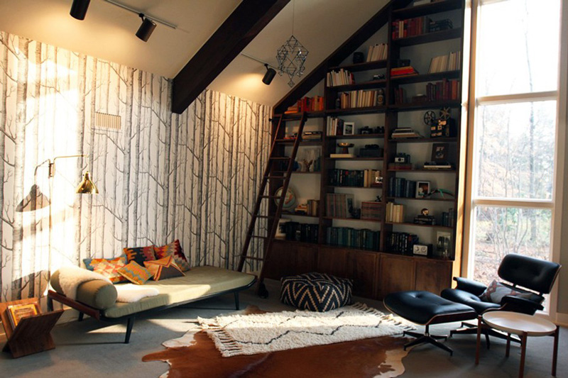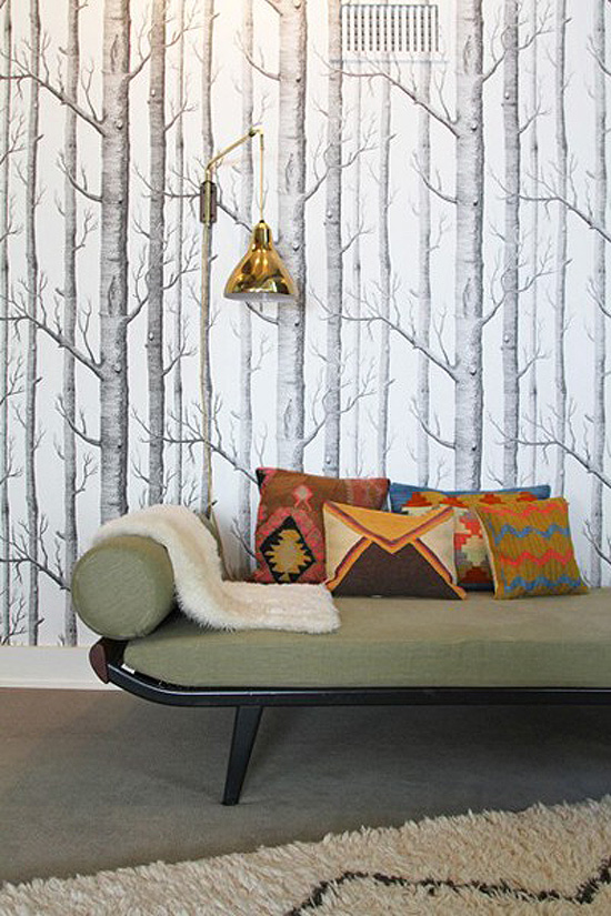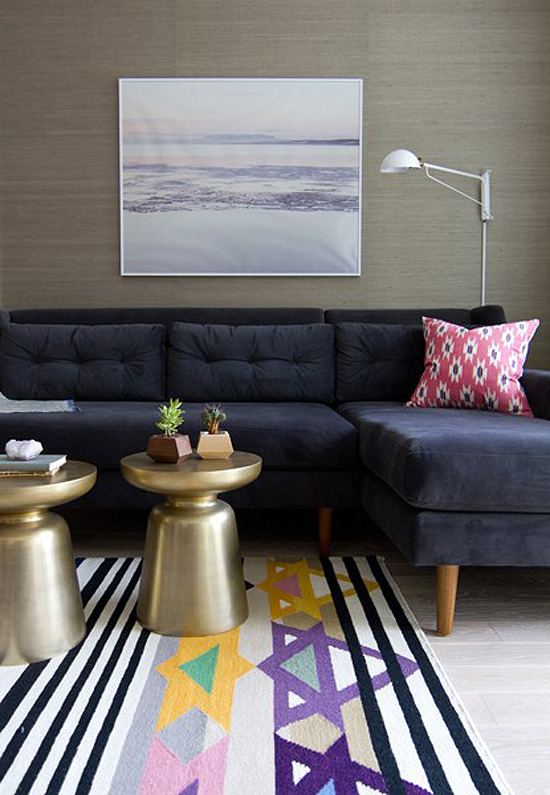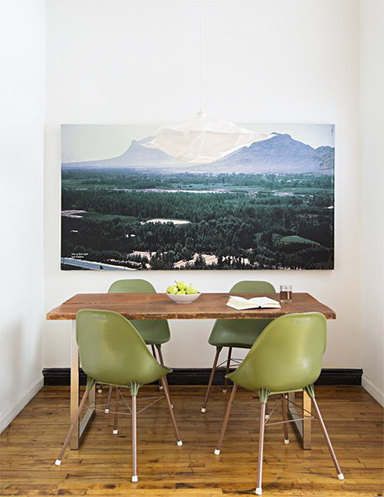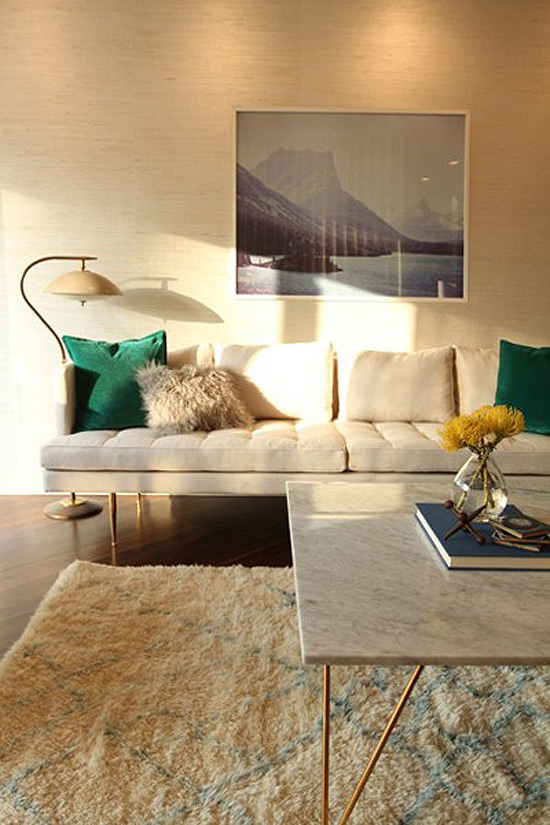Jenny J Norris creates spaces around her home base of New York that are bold and eclectic – mixes of mid century, modern, flea market finds, and loads of textures (such great rugs!). A few of these rooms are from her really cool Brooklyn loft, including the living room above.