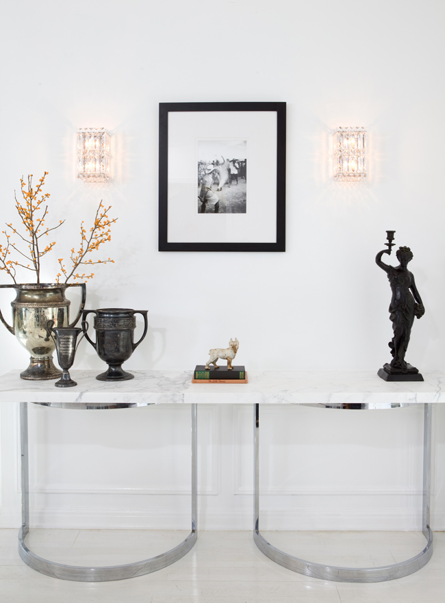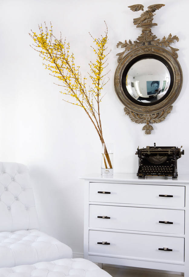 I have one more project by Amanda Masters to share today. Again, with an all white backdrop, but this time it is much more subdued with some glamorous features added in for sophistication, and industrial touches to keep the vibe casual. Again, it is ON.