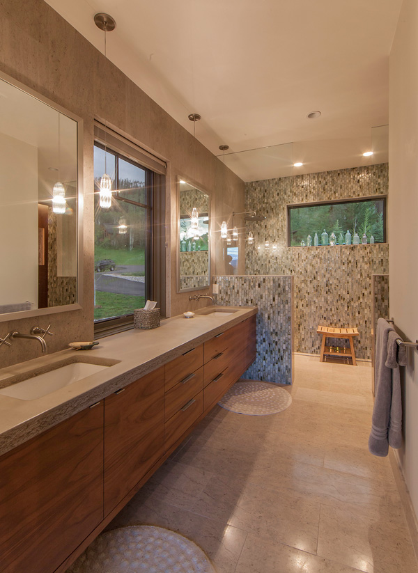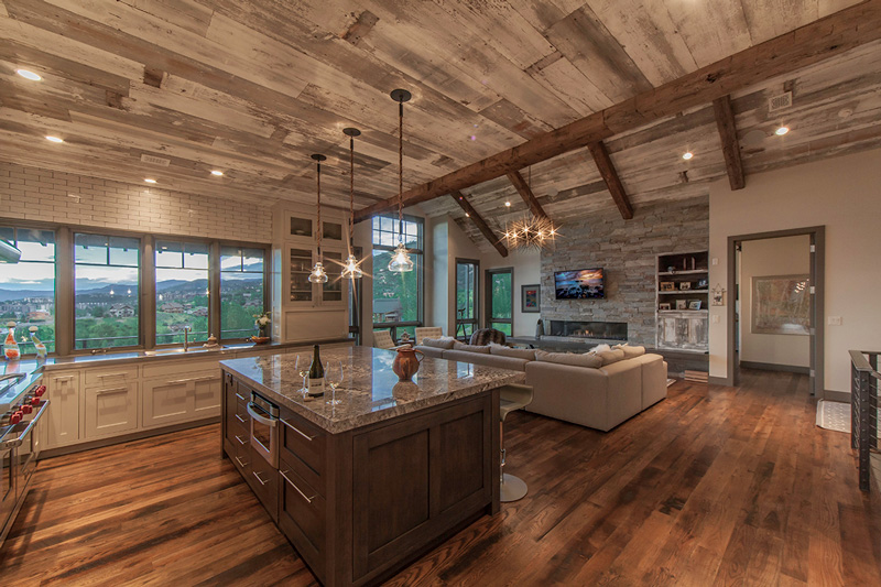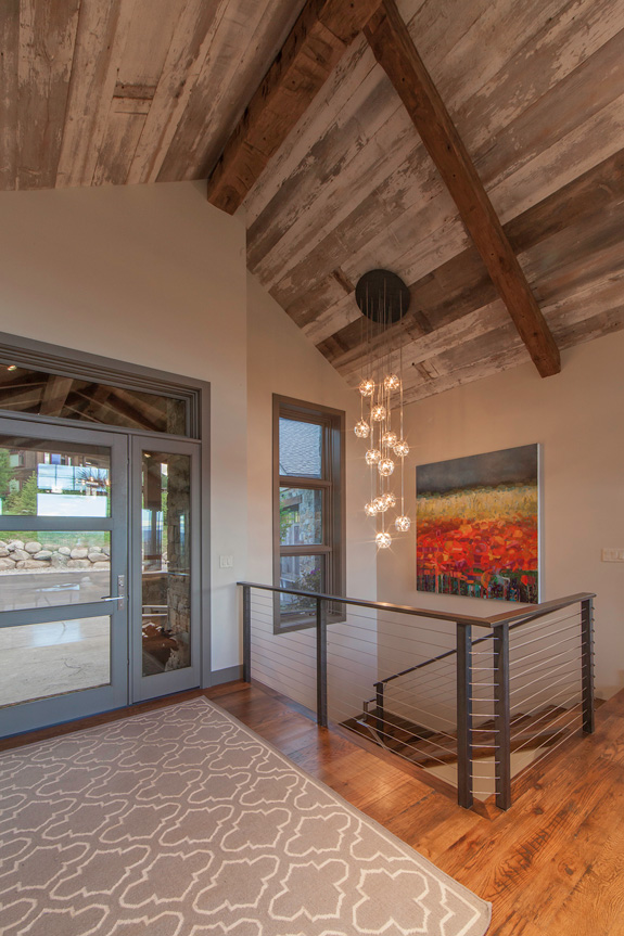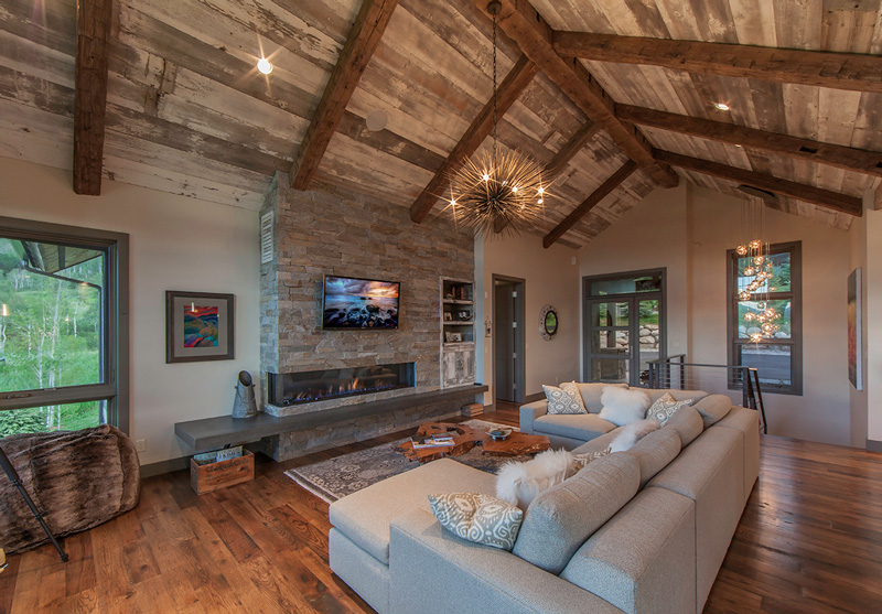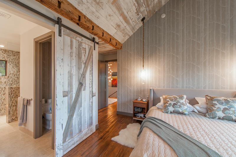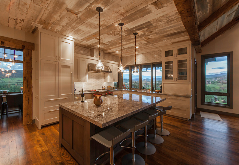Roughing it??? Far from it! This home has got to be the fanciest rustic cabin I think I have ever seen. It has everything a cabin typically has – reclaimed wood, stone, floors that look like they’ve been there 100 years, exposed beams, a place to BBQ….but this is anything but typical. This beauty was designed by Kelly & Stone Architects and takes rustic living to a whole new level.