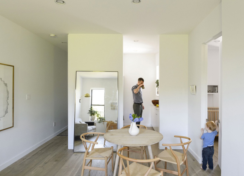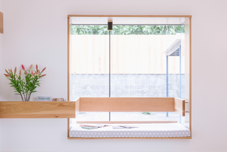 I love a window seat. Especially when it is on the fringe of a kitchen like this. Lean back. Relax. She’s making you a coffee I’m sure. By Preston Lane Architects.