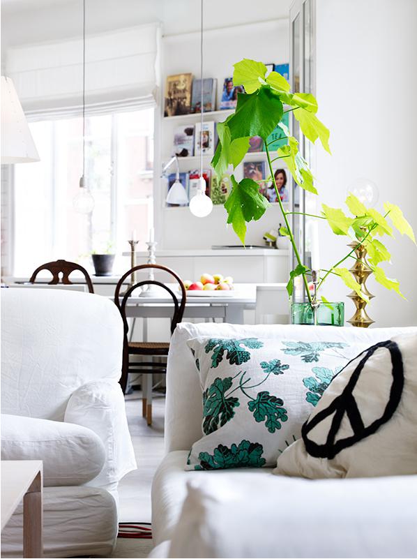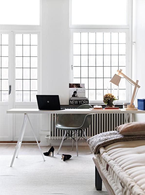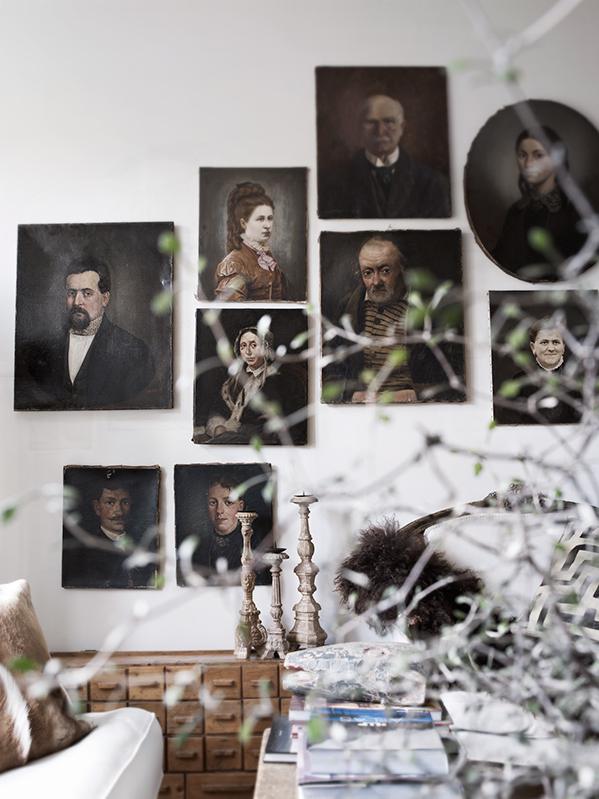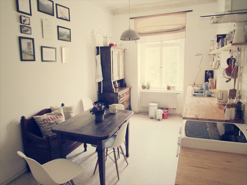 The little bench in the kitchen was built by my grandpa just weeks before he died this summer. There is a painting of him above the bench. All the paintings and photographs in the flat are my own. The desk in the kitchen was an attic found at a friends house and the sideboard in the kitchen is a combination of my grandmas commode and a fleamarket find.