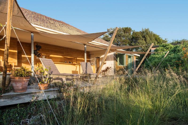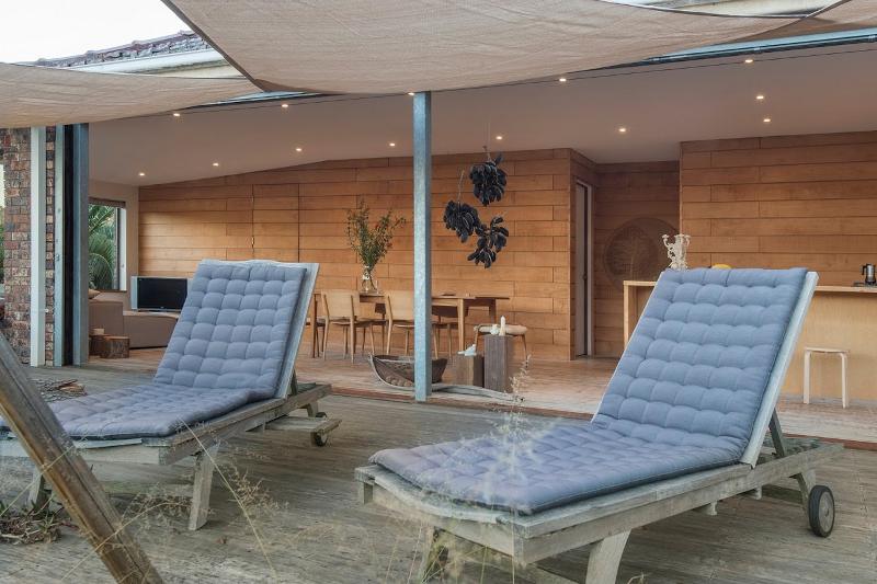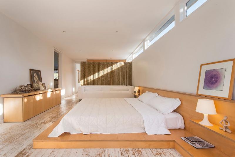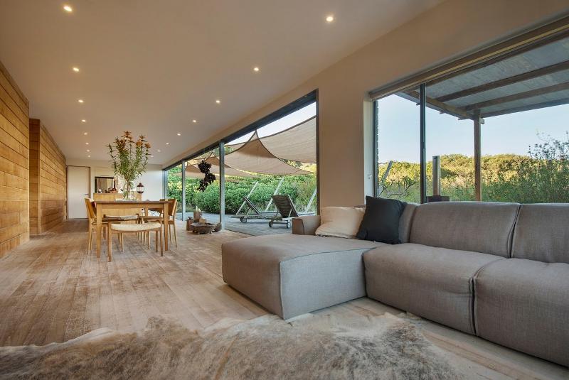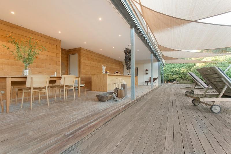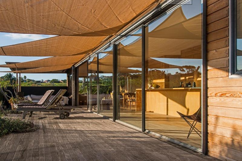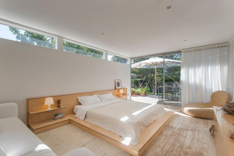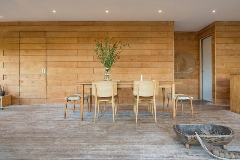 A renovation of a 70s Sydney home by architect Noek Witzand of noekdesign allows connection between the inside and out through a wall of sliding glass. Minimal style is warmed by wood and washed with white while seaside vegetation laps at the deck.