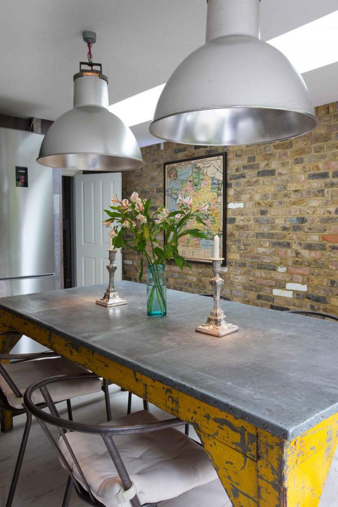 Love the tasty squeeze of yellow in this UK kitchen from jj Locations. Love the industrial elements, the zinc, the floors.