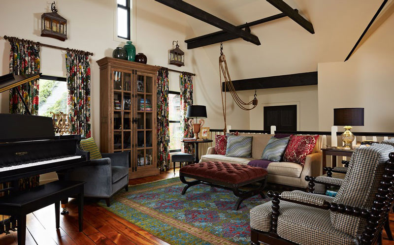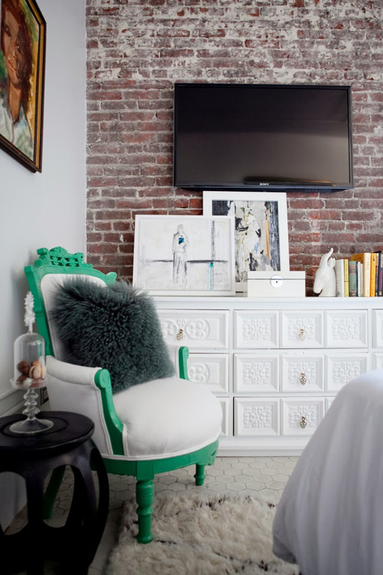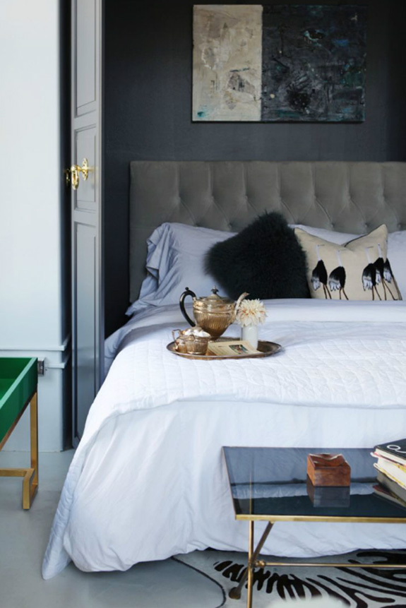 I was craving a little sophistication, a little hip and chic, and came across this loft by California design firm Caitlin & Caitlin (Caitlin McCarthy and Caitlin Murray) that does the trick. It is an eclectic mix of modern and Hollywood Regency, random colours and patterns, yet the marriage of disparate pieces makes for a very intriguing home. Love it!