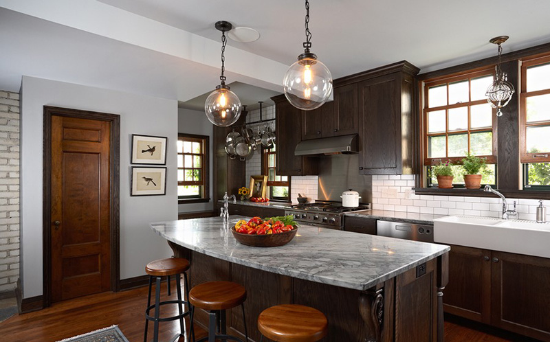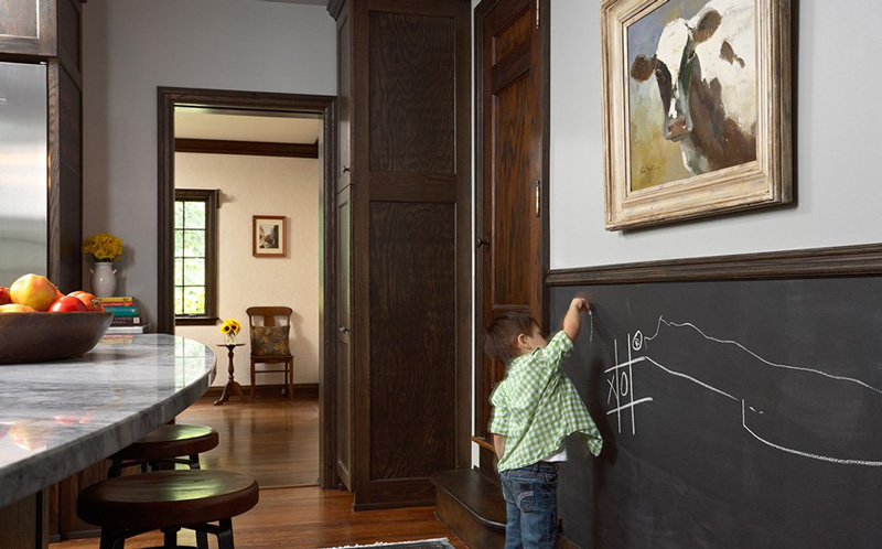 Fiddlehead Design Group is the Minneapolis interior design firm of Andrea Dixon and Jen Ziemer. I was perusing their website and found a list of their mantras, including the following: Never buy the set—matchy-matchy is nasty-nasty…Leopard, cheetah and zebra are neutrals…Less is more, bigger is better….Start with an amazing painting or a stunning rug—preferably both. Smart ladies! While their style lends itself towards traditional, they add touches like subway tiles, chalkboard walls and bold patterns to give a more modern twist. And I really like this first kitchen – cows and all.
