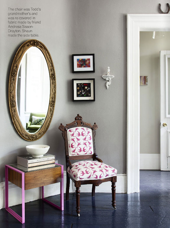 I seem to be a little slow trying to keep up with the latest in blogs, magazines etc. these days, but I was grateful last night to catch up on the last couple of issues of one of my favourite online magazines, and Canadian to boot, Covet Garden. Last month’s issue ROCKED, featuring the Toronto home of Shaun (co-owner of a shop selling handmade works by mostly Canadians) and Todd (owner of a flower shop). It’s an 1875 Victorian that they have spent 13 years renovating, and pimped it out with an eclectic mix of mid-century (ie. grandma’s couch) and modern furniture and art. Now this is an inspiring and creative home!