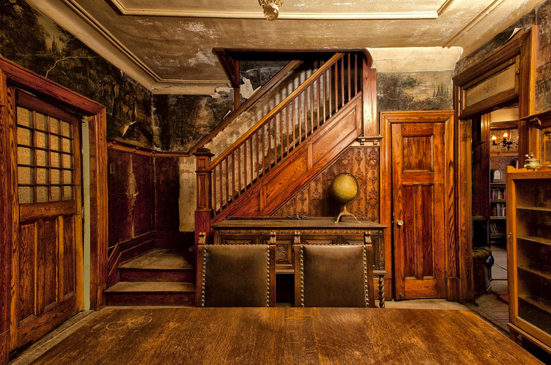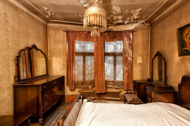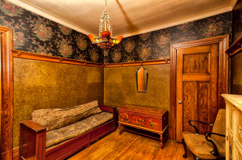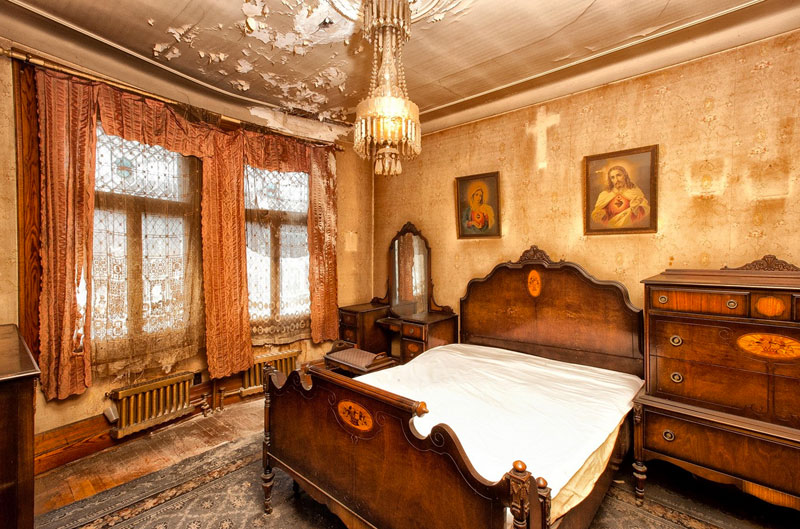 A big thanks to Lisa for sending us this link to a real estate listing in Rosemont, Montréal. This home has got to be haunted! While it needs a SERIOUS amount of TLC, the woodwork is to die for – check out the interior doors! And those chandeliers! The bedroom is my favourite – SPOOKY!