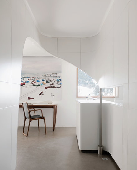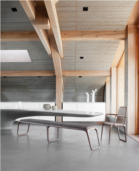 A French alpine chalet unlike most you have seen. Fluid, organic lines. A muted palette. Concrete, metal and plastic play against ribbons of wood. Part sculpture, all luxury. The Chalet la Transhumance in St Martin de Belleville by French designer and interior architect Noé Duchaufour-Lawrance.