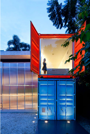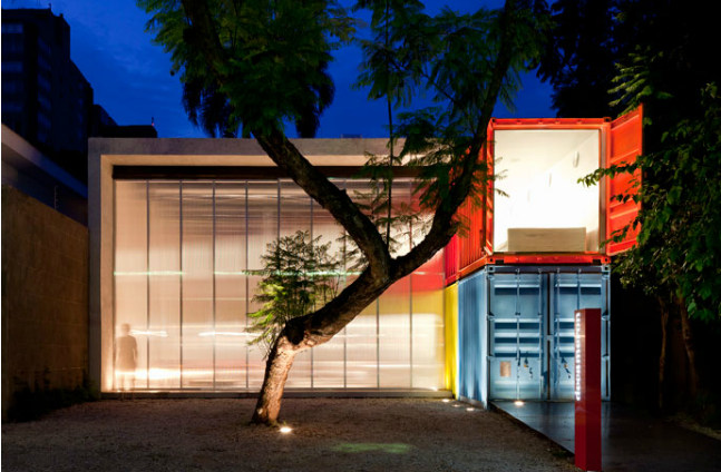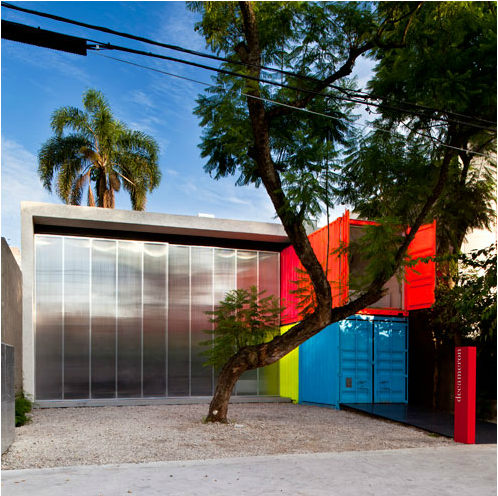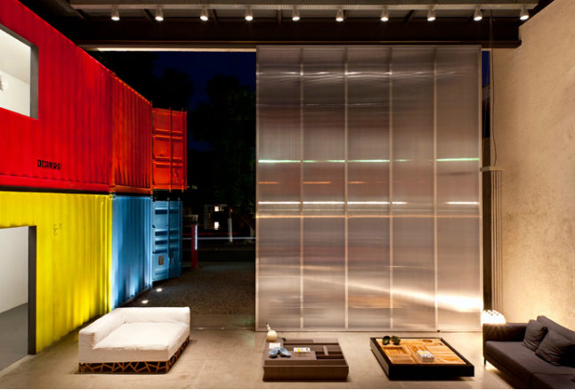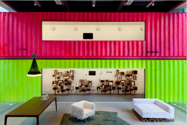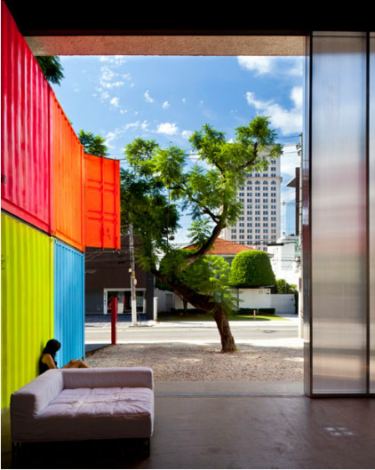 Clever! Lease the last remaining block in the hottest street in town but need a budget build? Need to retain existing trees because, of course, you have leased? Containers and polycarbonate sheeting. Brilliant, colourful, fun and down right funky. Retail design done with smarts. The Decameron by Brazilian architect Marcio Kogan of Studio MK27. Inteligente!