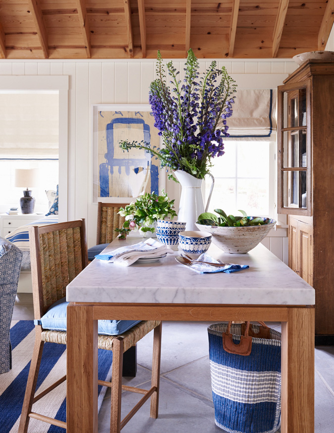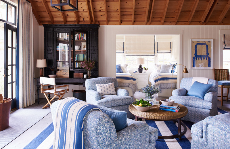 To ease you into the weekend how about some traditional vibes with beautiful textiles in blue and white stripes and florals by Los Angeles interior designer Mark D. Sikes.