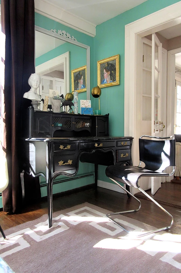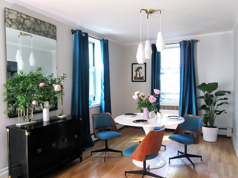 New York based interior decorator, stylist and small space guru Natasha Habermann adds flair, whimsy and lotsa chic to her projects with some fun colours, unique vintage furniture and lots of plants and flowers. I adore all of these spaces from her portfolio.