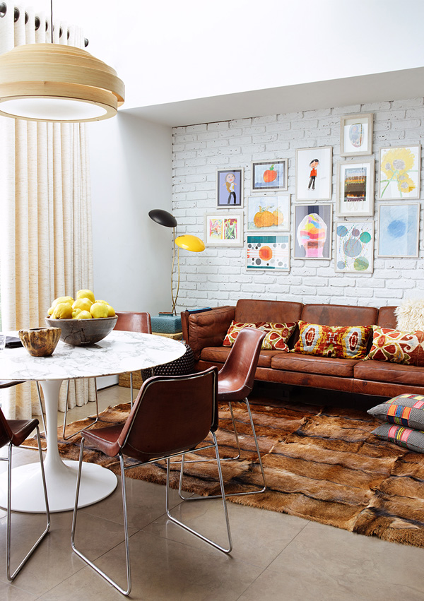 Hard angles, brick walls, beautful worn wood. Lovin’ this industrial apartment by Michaelis Boyd. I would need to add a few plants tho’. And something girly like a really sparkly chandelier.