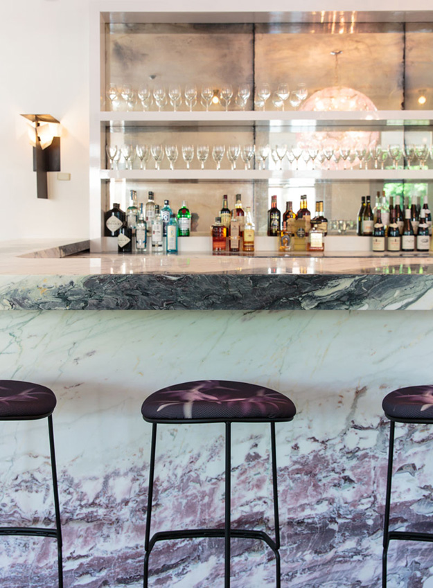 An elegant blend of comfort and glamour. An intricate layering of materials and detailing. Patterns and textures and art that add so much dimension and intrigue. By London & Miami based architect and designer Natalia Miyar.