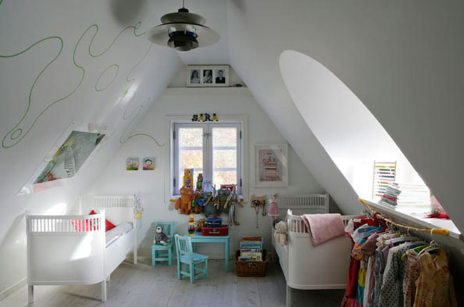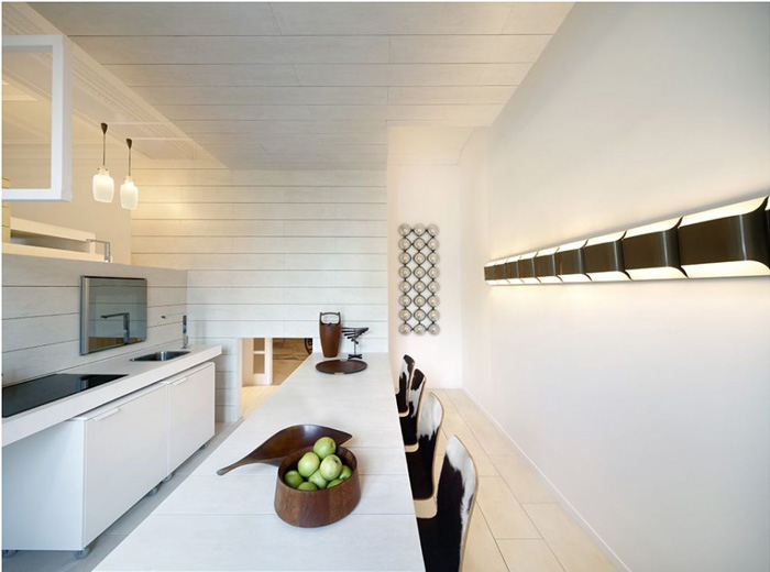 I found this home on Contemporist and had to re-post it here because I am completely in awe of the architecture. It’s mind-blowingly AWESOME. And inspiring because Jeff and I are in the process of researching architects for the work we want to do to my ok OUR home and I would love to something even one iota as creative as this. The space was created by Spanish architect Héctor Ruiz-Velázquez and is the attic space of an early 20th century building in Madrid. It’s composed of several different levels and angles yet it’s continuous which makes the space appear much larger than it is (it being all white helps too)….and frankly, WAY more interesting. It’s just plain NEAT-O.