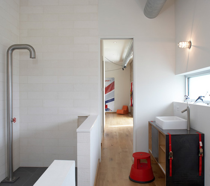 A modest, narrow cottage all dolled up and extended. A new lease on life with clever low line windows to let in the light but allow privacy… plus you get cool glimpses of legs walking, or in my case stalking, along. Love the concrete floors, the wine storage in the galley kitchen, the little ponds at the base of the windows, the traditional facade which never lets on that something bright and shiny new is hiding just behind. You’ll find the house in Northcote, Melbourne. Link here while it lasts.