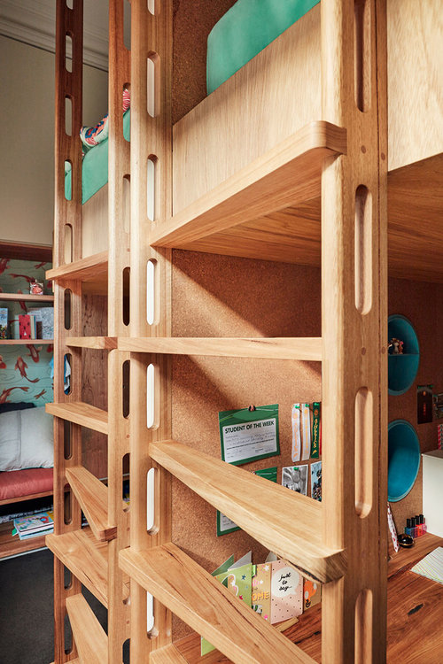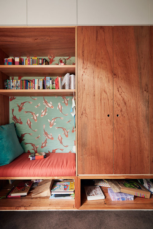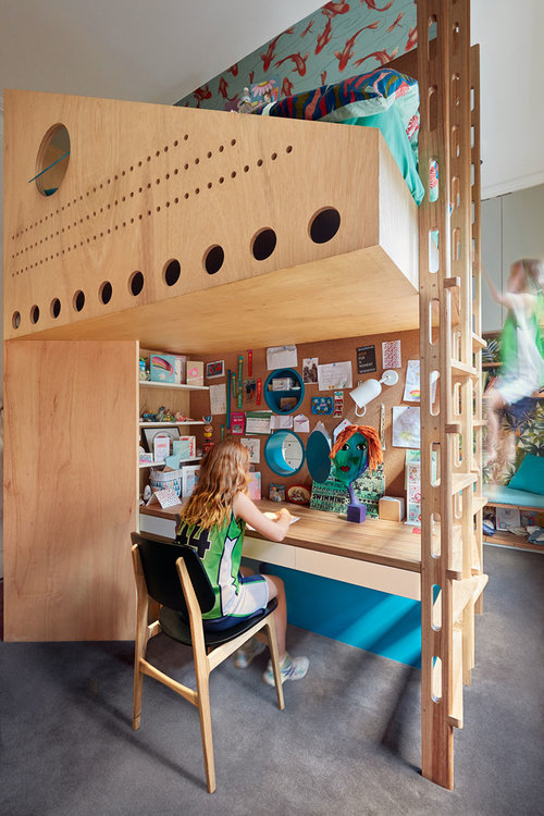 My sister and I shared a bedroom for many years as children. There would have been far fewer fights if our parents had divided our room like this. Beds above, desks below and pull out dividing walls. Hang on. There better be another reading cubby on the other wall or it won’t end well 😉 Together Apart by Melbourne-based Architecture Architecture.