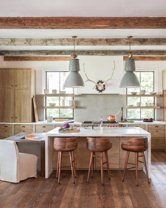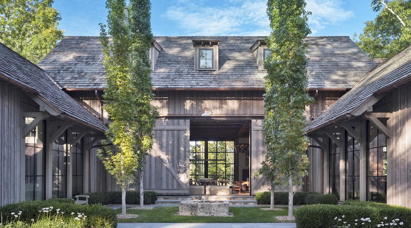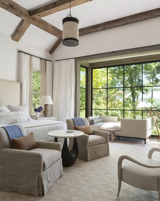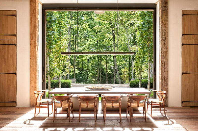Close your eyes. That’s right. Close your eyes. Imagine a barn, a big, grey barn with huge doors that silde open to reveal views of lush green woods. Imagine the space divided into rooms intimate or vast. Now furnish those rooms with simple pieces, simple, beautiful, tactile things. Think of aged timbers and white wash, stone and linens, old but new. Open your eyes. Did your dream barn look like this one? Mine did. Contemporary Barn by D. Stanley Dixon Architect.
