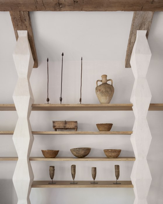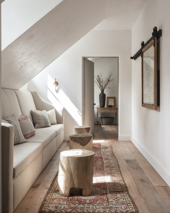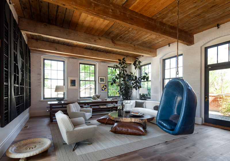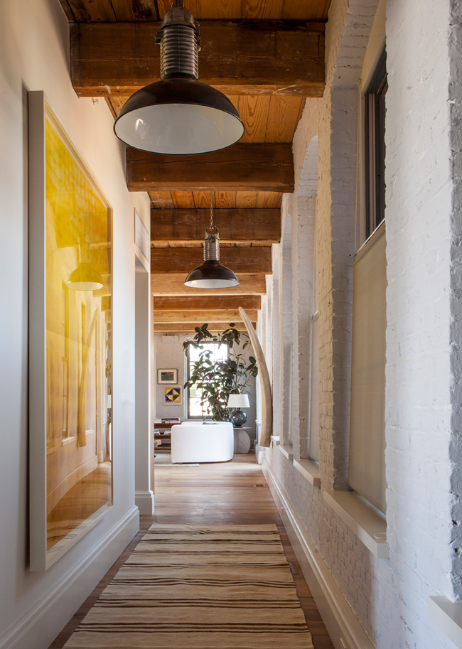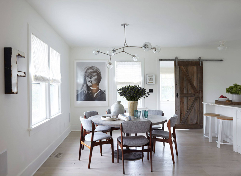 The renovation and extension of this Beverley Hills home included the incorporation of elements from a dismantled 19th century wood barn as well as a new entrance and landscaping. The old beams and siding add warmth to the expansive rooms. I love the marriage of the new build with the old barn wood, the mid century feel of the furnishings working back against the aged timbers and white walls and the beautiful dry climate garden. Jenni Kayne Home by Los Angeles based architecture and interior design firm Standard.