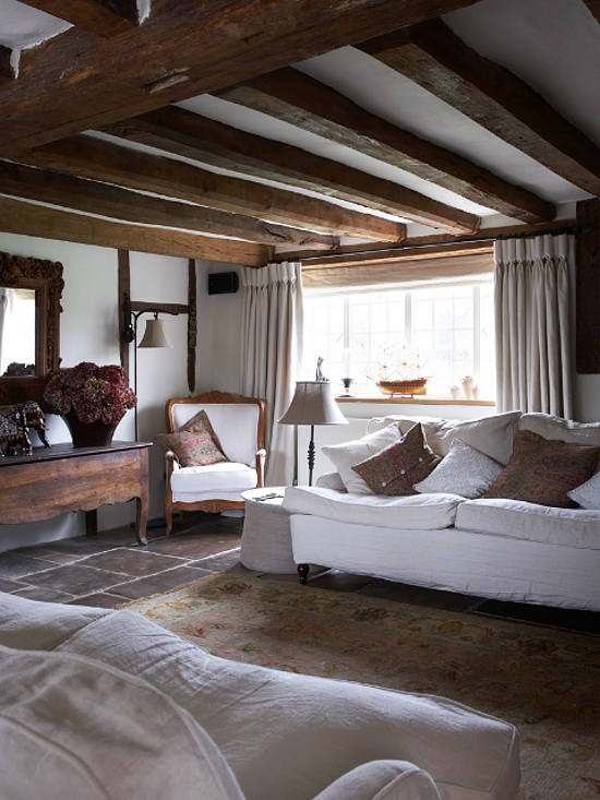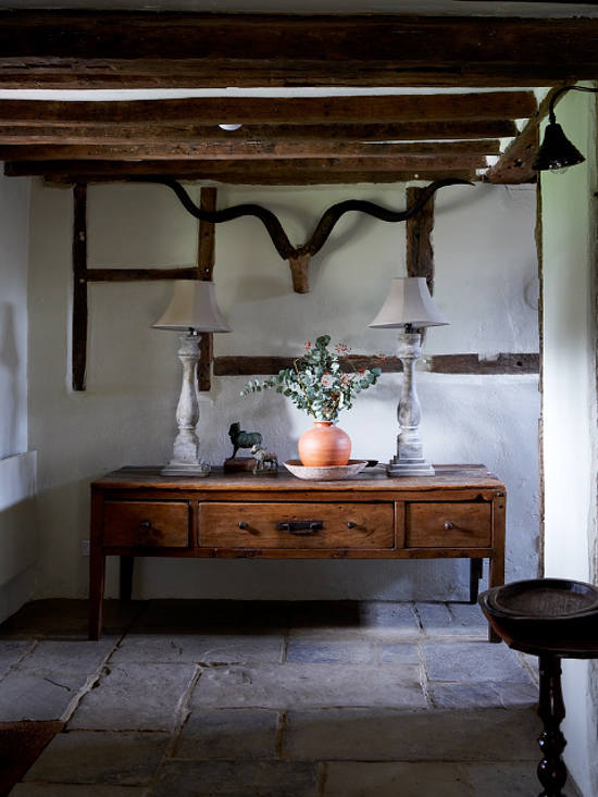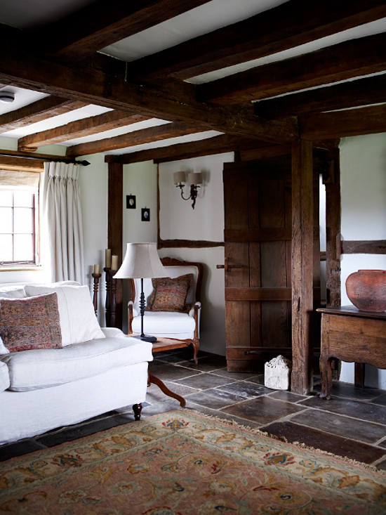Oak beams and half timbered walls, flagstones and horse brasses. It all adds up to a quintessential English cottage but this house by i gigi is layered with contemporary, French and Asian influences. A monochromatic melody of old and new, local and global, natural and neutral.