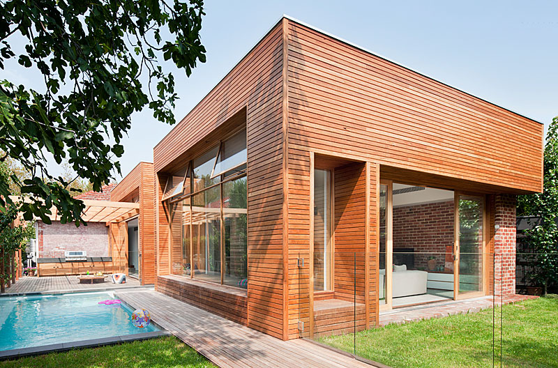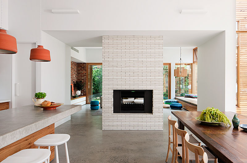 This bright and airy extension to a California bungalow by Melbourne-based BG Architecture is all about flexible open plan living and a seamless transition between inside and out. Favourite bits? The generous daybed by the expansive window (which you just know will hide great storage) and the simple, modern lines of the kitchen warmed by wood and the terracotta lights. These stylish family quarters are the perfect relaxed oasis from the bustle of the outside world.