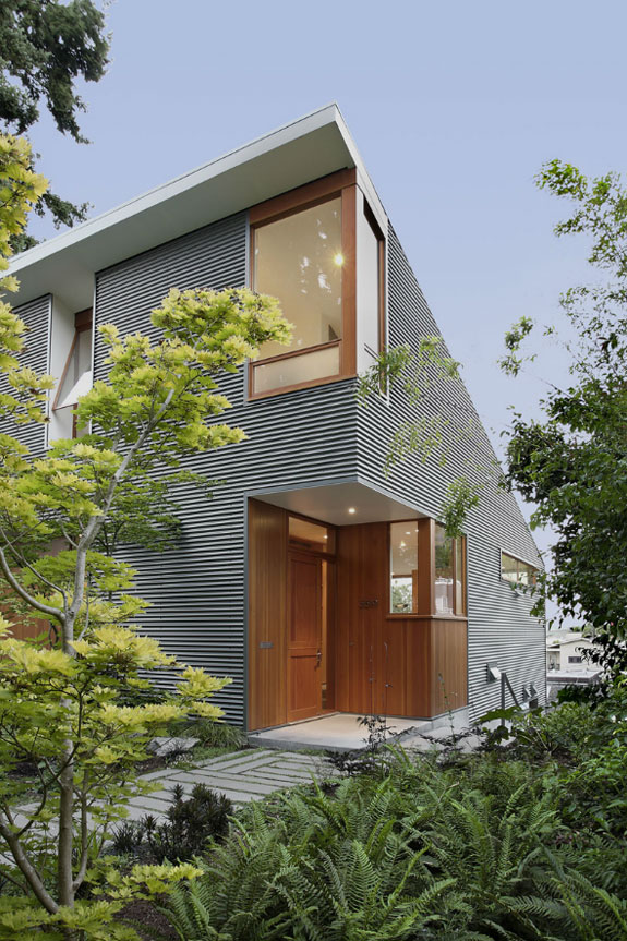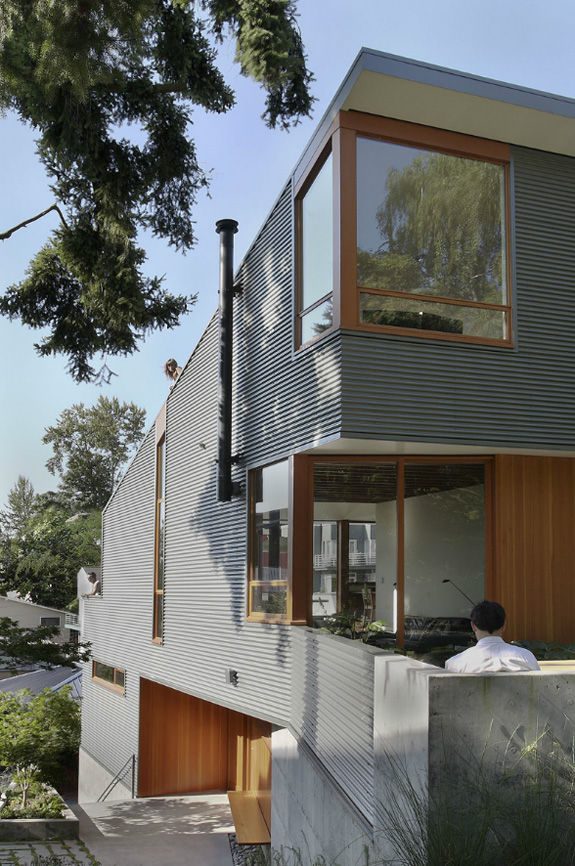 This simple and modern structure is my ideal new-build home (minus all the corrugated steel on the exterior – I am not a fan of that stuff). Concrete floors so cats can run amok as they do and I won’t have to scream, pale wood and white walls as a lovely backdrop for furnishings and art while not losing focus of the architecture, some exposed beamed ceilings, an abundance of large windows, and a streamlined outdoor space. Another successful project in Seattle by SHED Architecture & Design. (Check out past features here and here)
