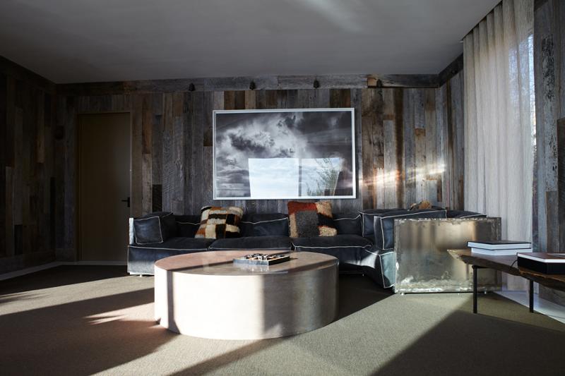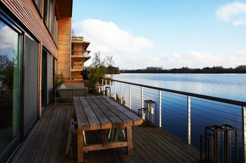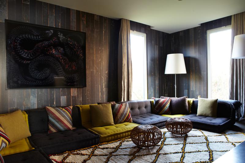 Moody and brooding. Modern masculine with a touch of retro. Wood on the walls and mah jong sofa on the floor. A stylish lair for entertaining and relaxing. And then there is the water. Lakes 1 via Airspace locations.