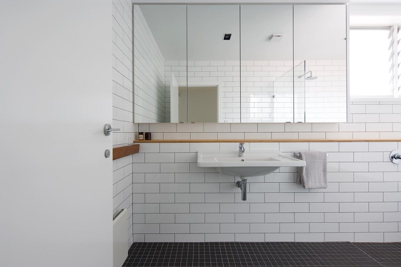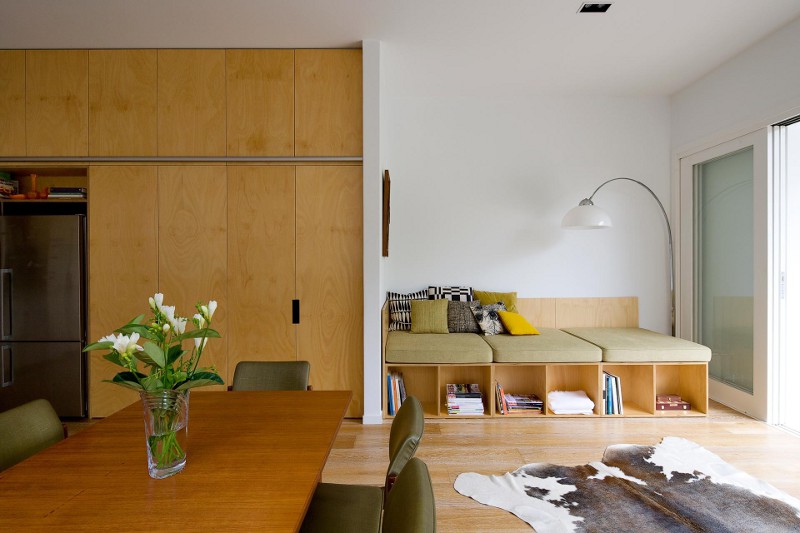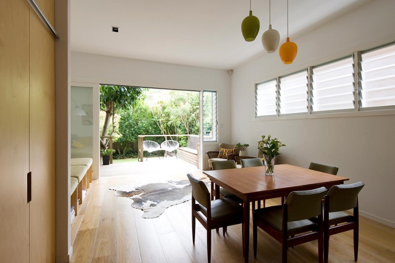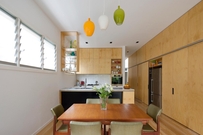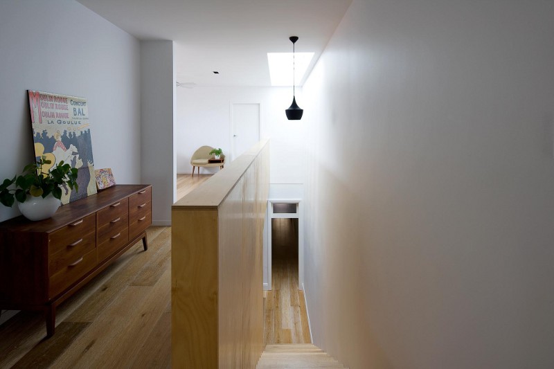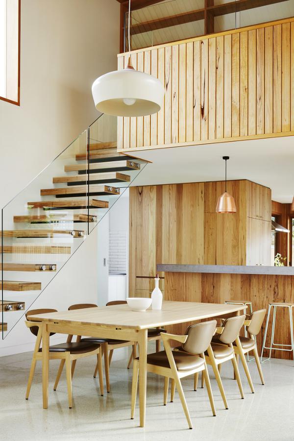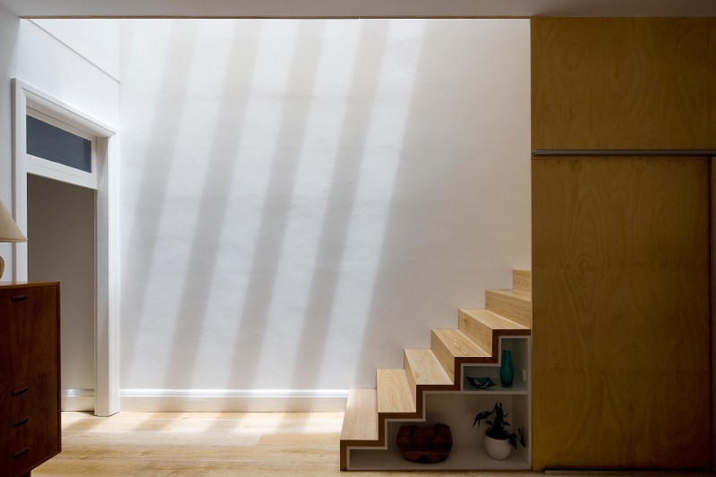 Another great renovation from Nadine Nakache Design. The original semi-detached home has been reconfigured and enlarged at the rear. The contemporary addition sees clever storage solutions and staircase playing a connecting role between living, kitchen and dining areas. Modern, simple, clean lined. Functional and fabulous.
