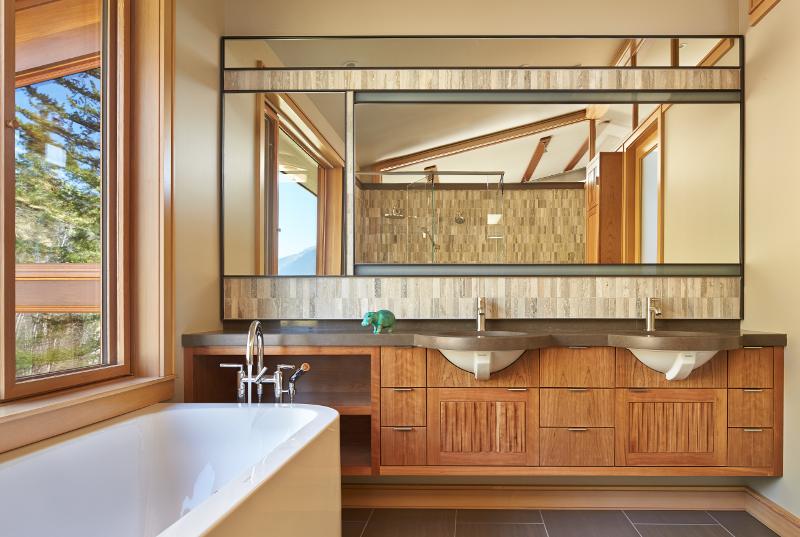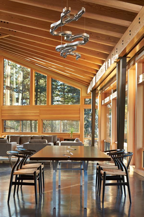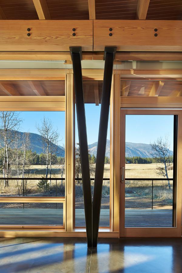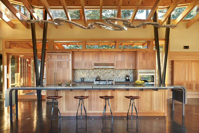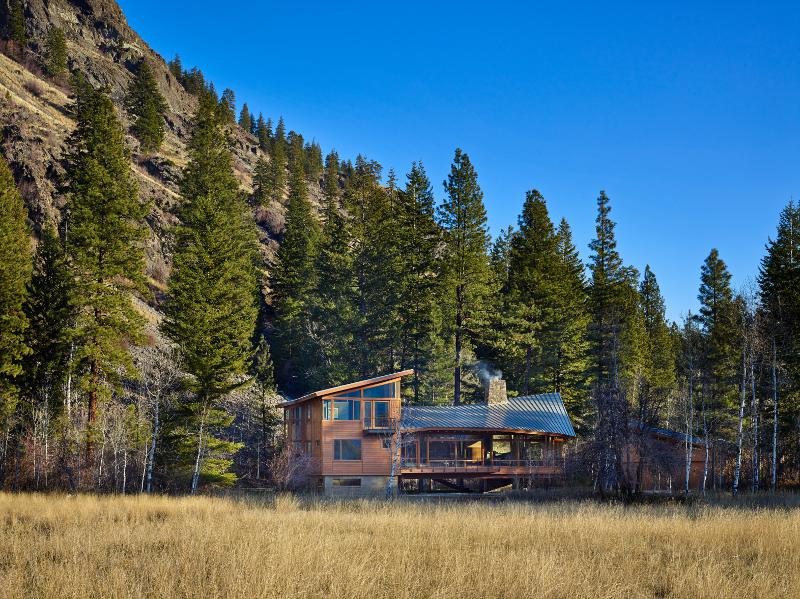 Touching lightly on the meadow in which it sits, this amazing home by Finne Architects celebrates not only the view but the craftsmanship and artisan beauty of a carefully considered building. Nils Finne calls it crafted modernism, with cast bronze inserts at the front door, variegated laser-cut steel railing panels, a curvilinear cast-glass kitchen counter, waterjet-cut aluminum light fixtures and many custom furniture pieces. Interior, exterior, relation to site, all integrated, all pleasing to the mind and soul. The Mazama house located in the Methow Valley of Washington State, a secluded mountain valley on the eastern edge of the North Cascades, about 200 miles northeast of Seattle.