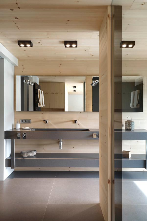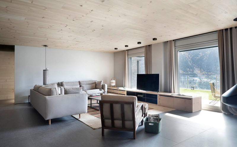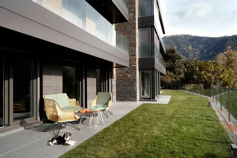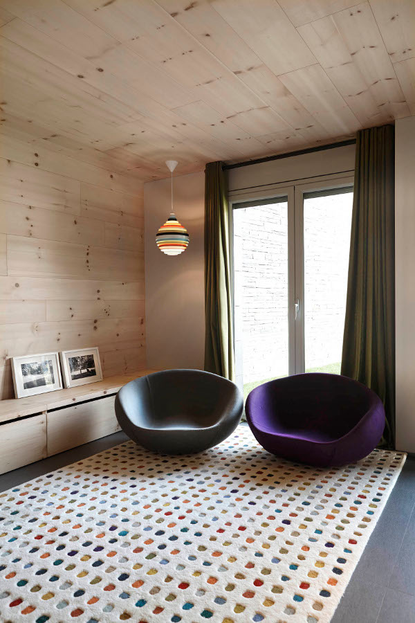 Retro and modern. Midcentury and modern minimalism. Cool greys married with blonde wood. Solid and block like grounding the building on its hillside perch. Contemporary family living by Barcelona-based Coblonal Arquitectura.
