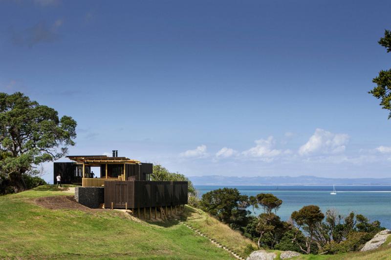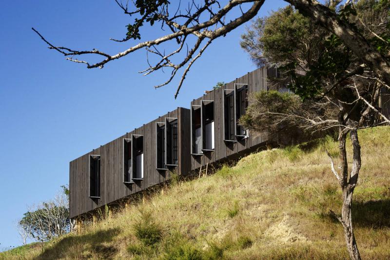 I am delighted, entranced, challenged and content. Two pavilions perch on a ridge overlooking a small beach. Indoors and out meet and mix blurring boundaries, extending views, enhancing the get away from it all holiday vibe. The New Zealanders truly know how to design a family holiday home.