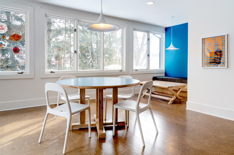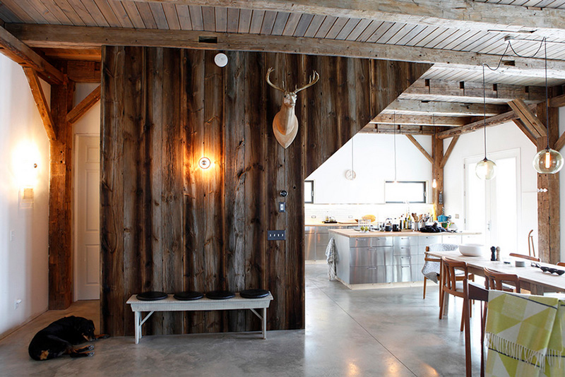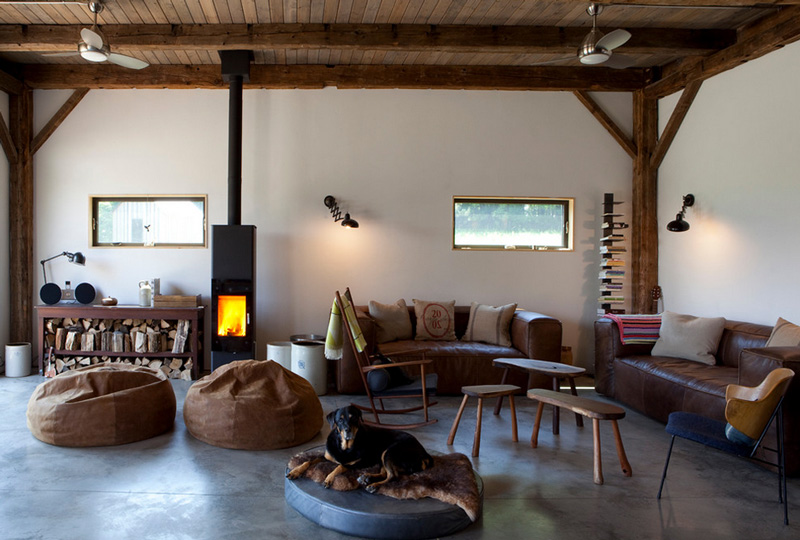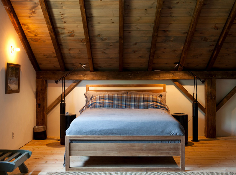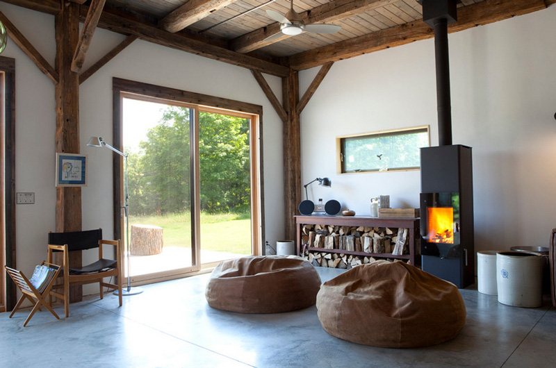 Proving the point that simpler is sometimes better. The main structure of this home in the Catskills (NY) is a timber frame from an nineteenth century barn that has been restored and raised on this new site. The very basic configuration and architecture makes complete sense in these surroundings, and draws attention to the beauty of the original structure’s timber. By Kimberly Peck.
