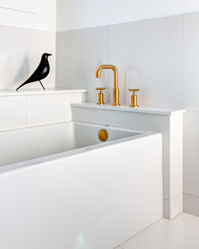 It’s pretty clear. There are cool people in my sleeper government city of Ottawa (I can poke fun because 1 – I have lived here my entire life 2 – I am one of those boring public servants). I recently discovered the cool people of Clear., an interior design firm who created modern spaces that are spunky and magazine-worthy. I want all of these bathrooms. Gorg! And while admiring all of the gold bathroom hardware, does anyone know of a sweet gold/brass kitchen faucet I should consider for my kitchen redo? I am having a REALLY hard time finding one. (Photos: Joel Bedford, Urszula Mentean)