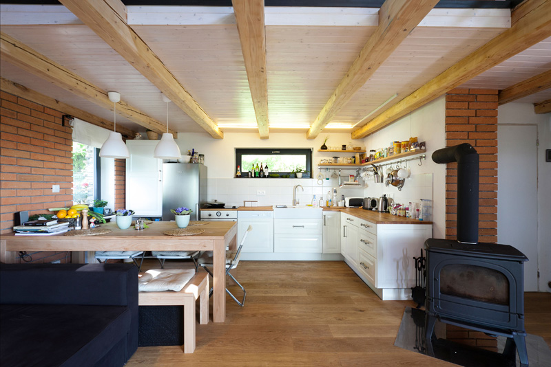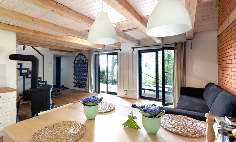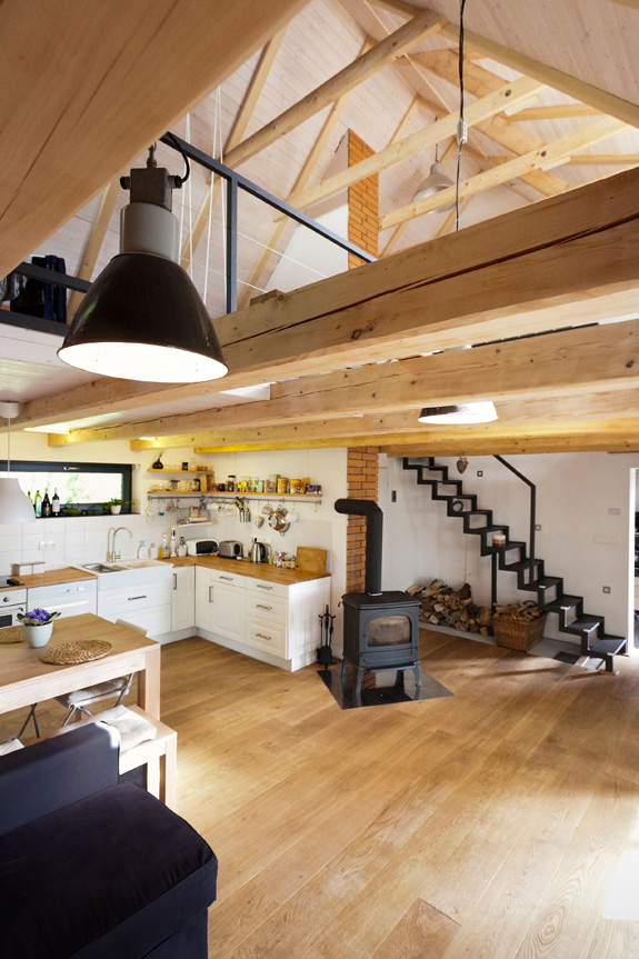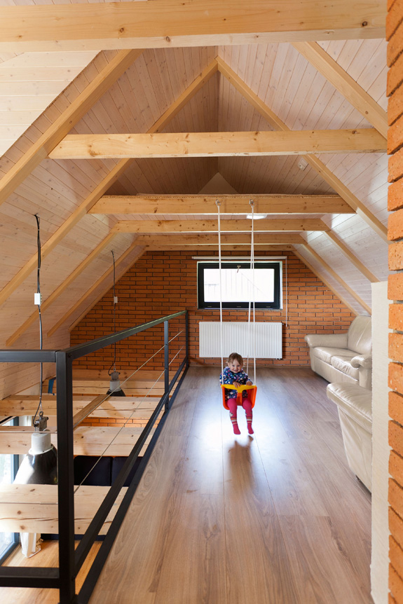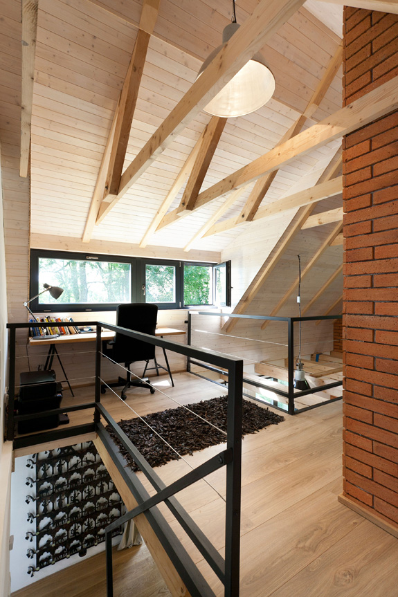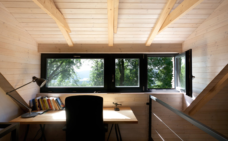 What was once a summer home built in the 8os in South Bohemia, Czech Republic is now an updated and completed renovated primary residence for a young family. The main goal of the house’s redesign was to keep its simple form and to create a connection between the nature outside and the interior. Yes it is simple but it is really beautiful. Look at that view from the upstairs desk area. Magical. By B² Architecture, photos by Alexandra Timpau.