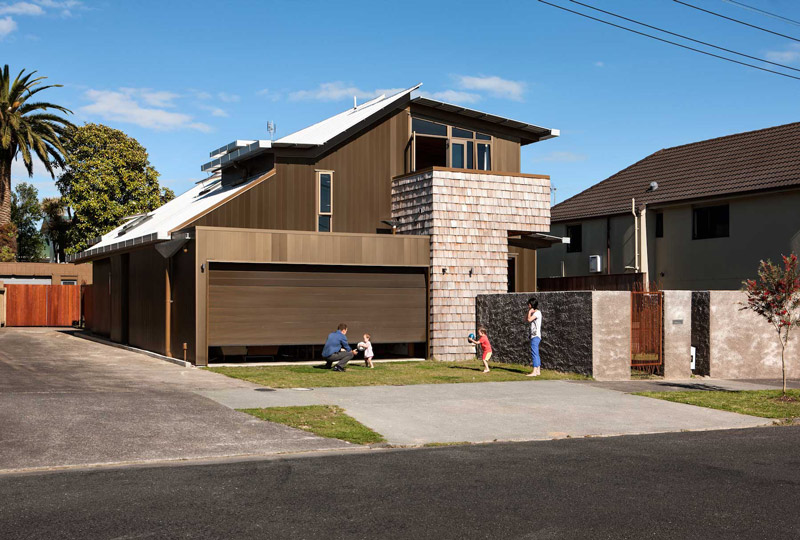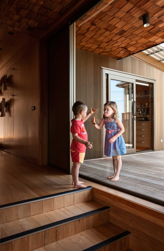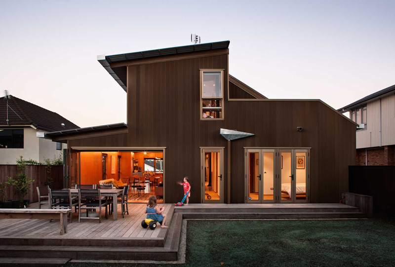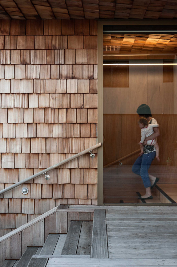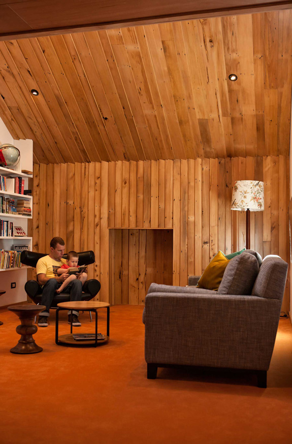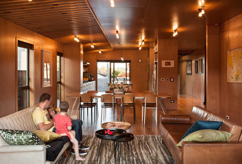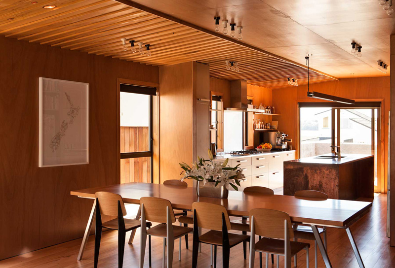I found this really cool New Zealand home with a midcentury modern vibe and lots and lots of wood and had to share. Designed by Bull O’Sullivan Architecture, it has some interesting features like the groupings of light fixtures throughout the main space (an electrician’s nightmare) and the floor to ceiling window looking out onto the backyard. I’m not sure I could live with this much wood but it certainly makes the space feel warm and “earthy”.