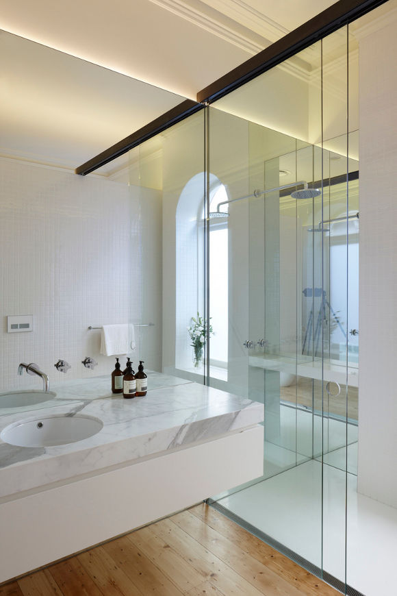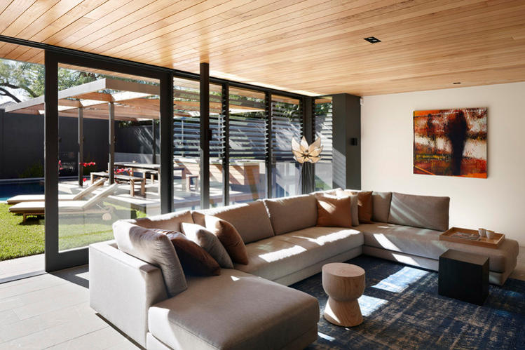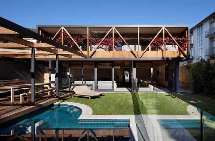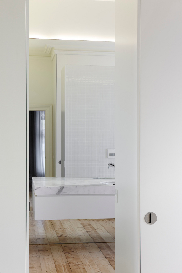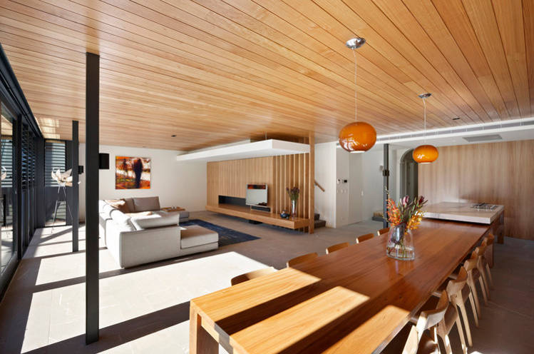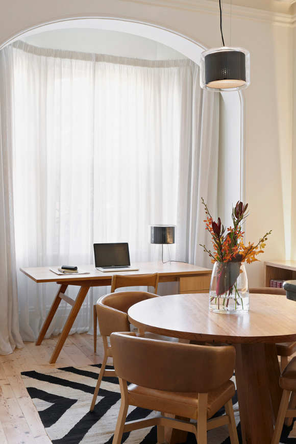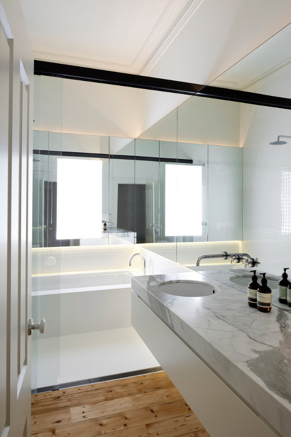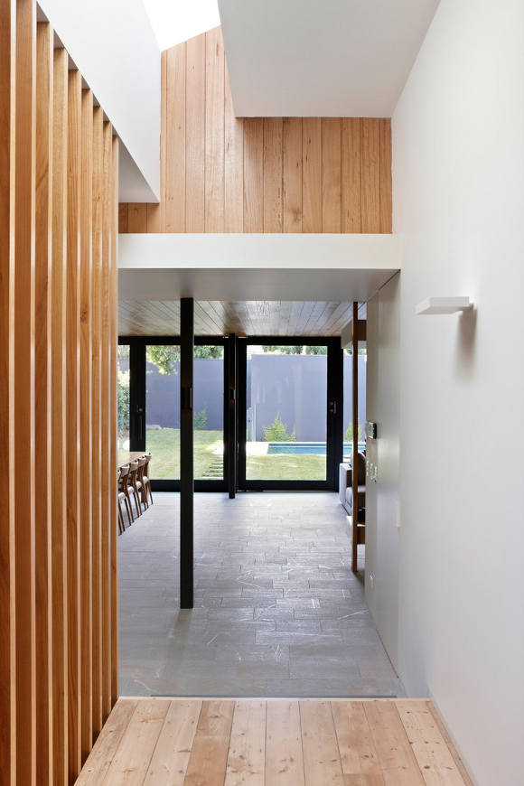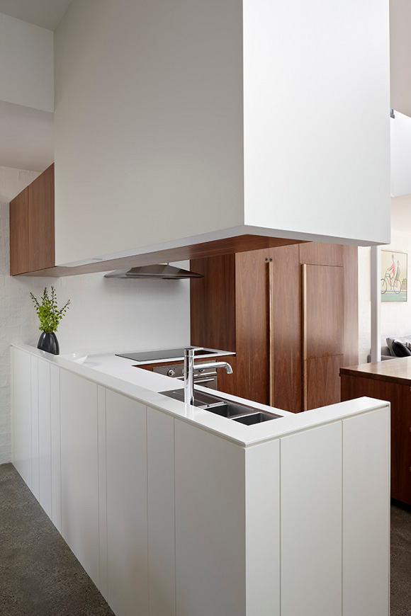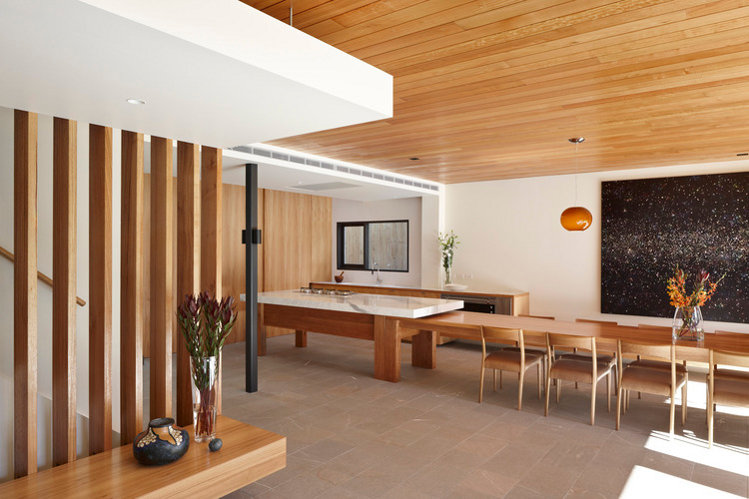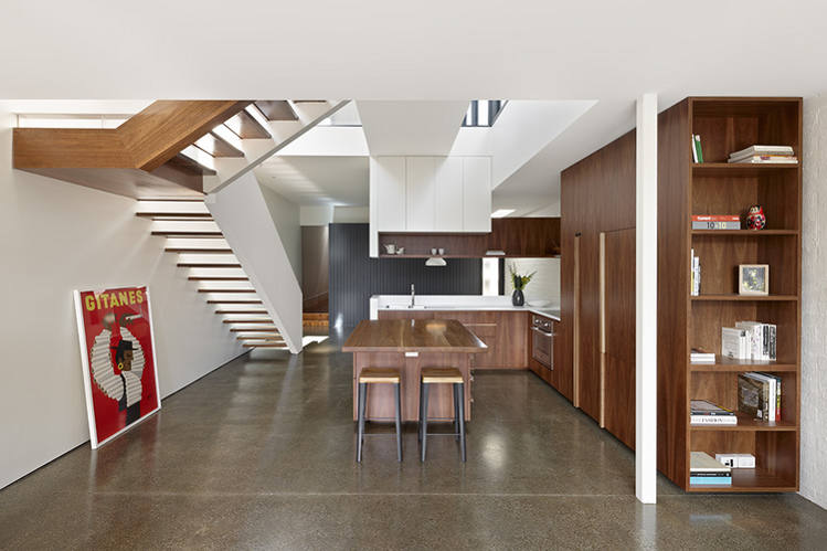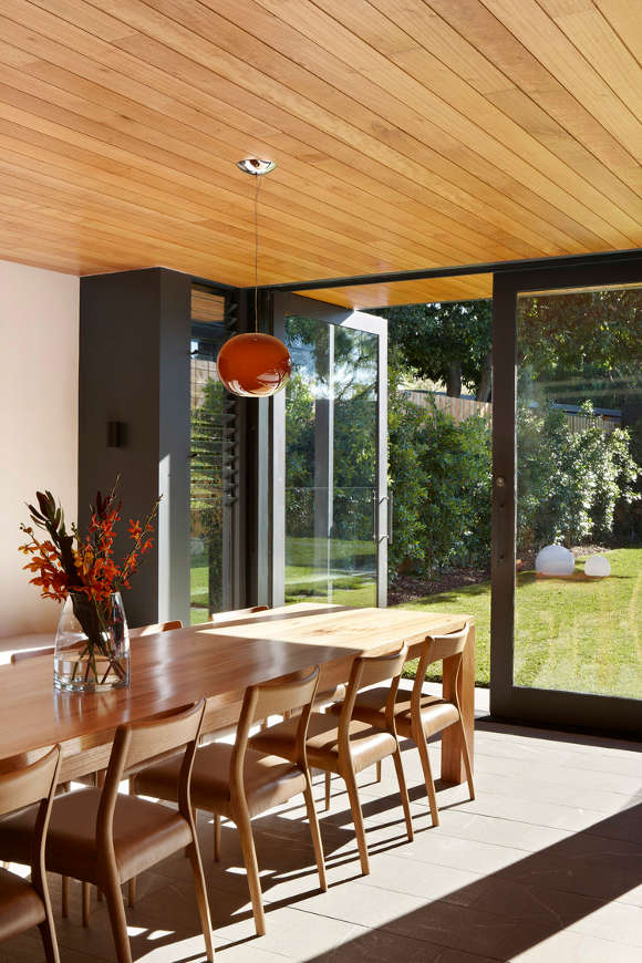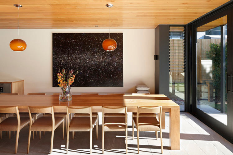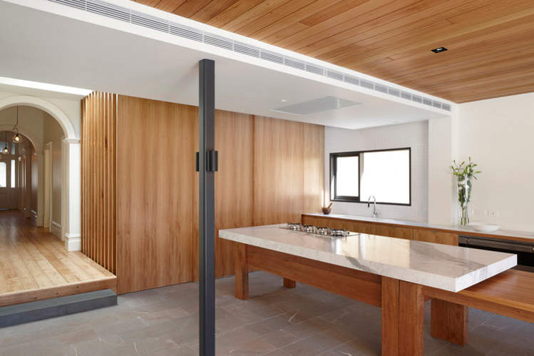 Melbourne based AM. Architecture creates buildings of their time and yet timeless. There is a calmness and a simple presence to their work. Form and functional not flashy and fake. That doesn’t mean drab and cookie cutter either. This Hawthorn house is a case point. The existing Victorian era home was restored and freed from generations of fragmented renovations while the new extension took the house into the 21st century and provided a focus for open plan family living with a strong connection to the outdoors. Love the strong linear connection between the walk in pantry, kitchen bench that transforms into dining table.
