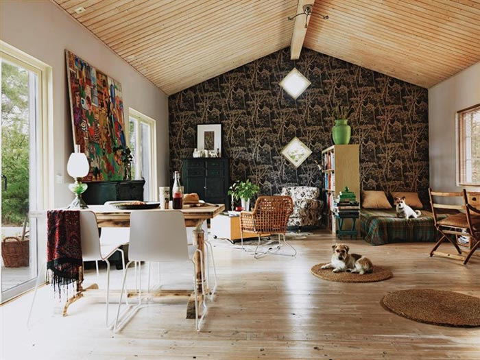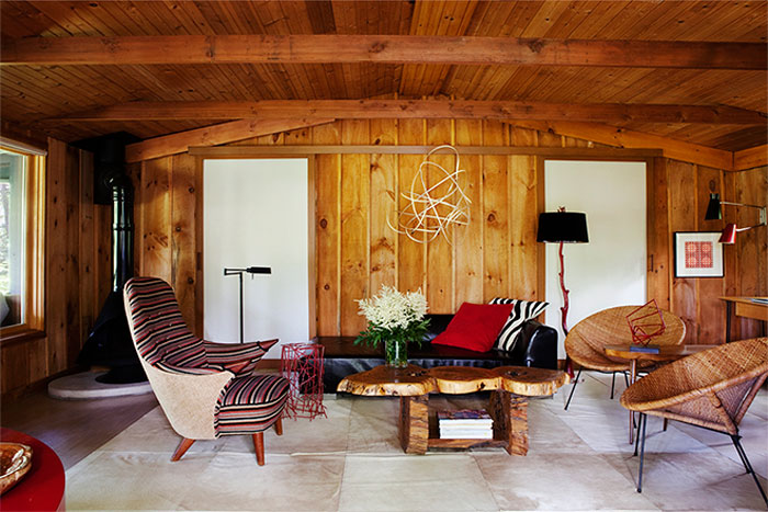 I was trying to figure out what post I could do relatively quickly, and realized I had some photos saved of “wood walls” – inspiration for my house when it finally gets renovated (on that note, we’re now considering tearing it down and rebuilding, which has thrown me for a loop, as that was never the plan when I bought this house). I want a rustic touch to the place, and what better way than a wall covered in wood slats…or maybe panels, but I’m leaning towards slats. Here are some photos with walls of wood that I really like. (See also this post on wood panelling)