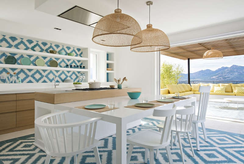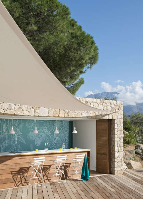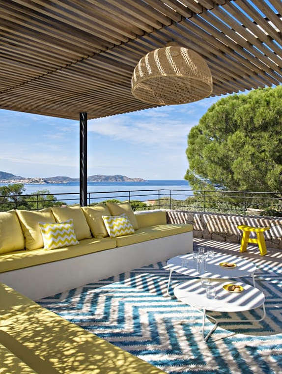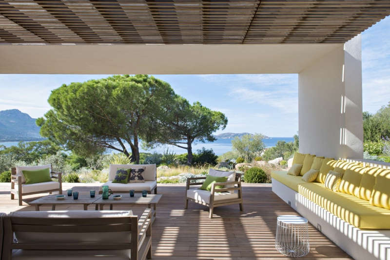 When you can almost reach out and touch the blue Mediterranean Sea from your terrace, when the sun baths your holiday house in golden light and when the views are of the green forested headlands then choosing a colour palette is easy. As to the style why it’s relaxed luxury, simple yet chic. A colourful home in Corsica by double g.