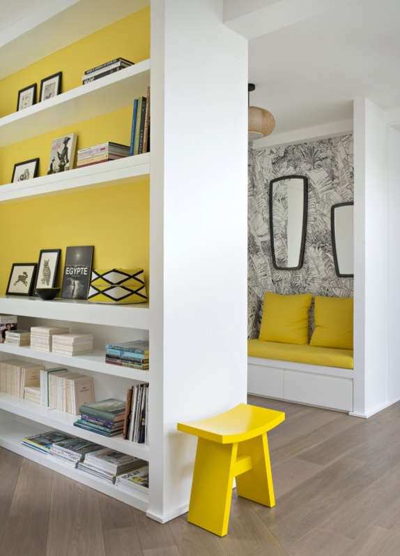 Marcin and Magda Konopka of Polish design firm Ministerstwo Spraw We Wnętrzach (Ministry of Interior Affairs) are back at it with another modern gem of a project. This one has a mid century modernist twist and accents in bright yellow throughout, keeping things cheerful and fun. There’s my favourite tumbling block pattern tile used in a few places, and holy smokes the upholstered bed alcove is gorgeous!!