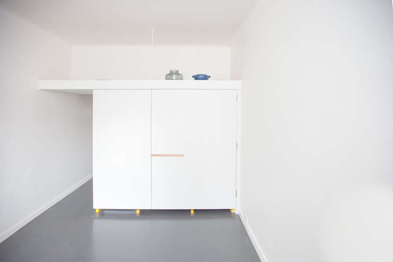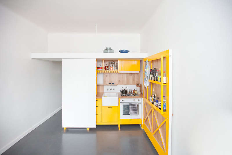 Live in a small studio apartment? Basically just one room in which to cram your living sleeping and kitchen? Love to cook but don’t want to stare at the kitchen sink while you’re reclining on your bed? Rather forget that you live in just that one room? Here is a little inspiration from Melbourne based Nicholas Agius Architects. (Now I just wonder what the studio apartment looked like when the rest of the “stuff” was moved in.)